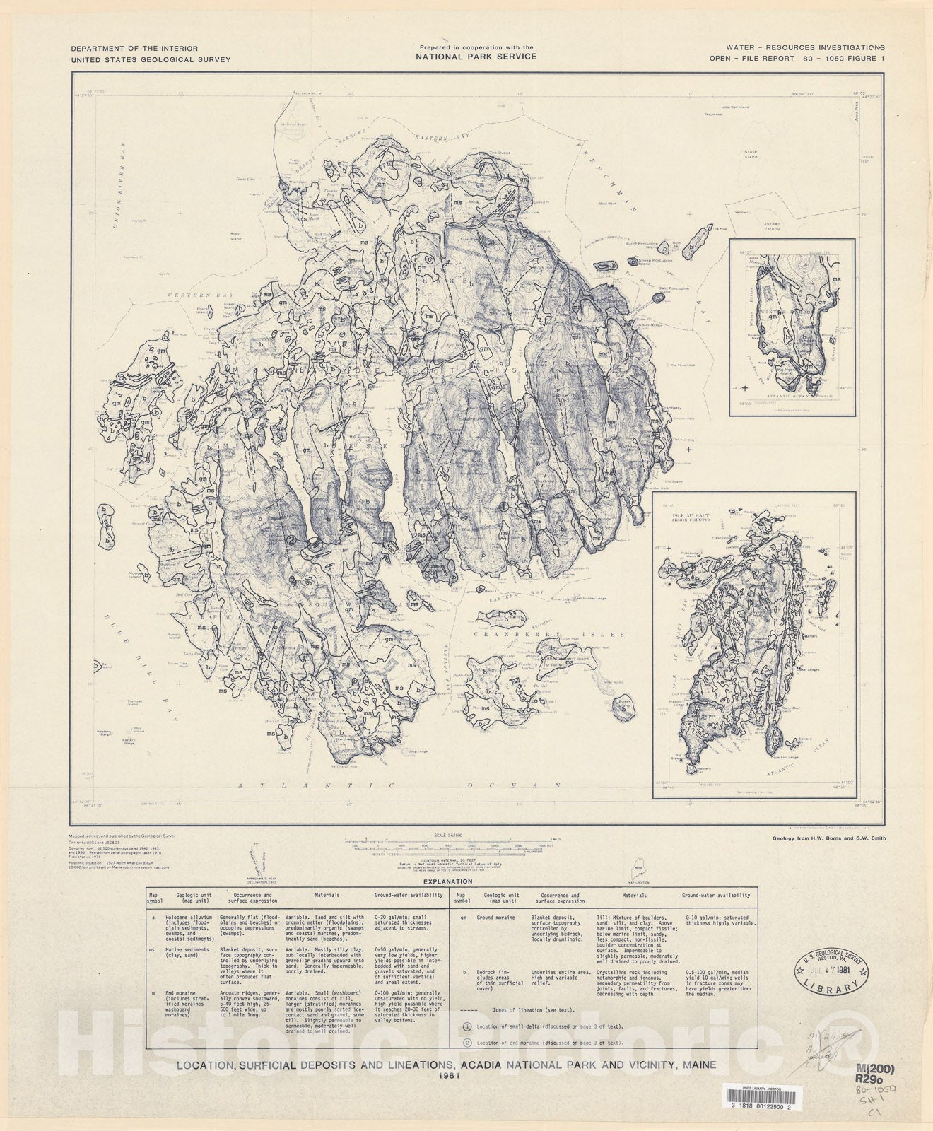 Map : Ground water availability in Acadia National Park and vicinity, Hancock and Knox Counties, Maine [Mount Desert Island], 1980 Cartography Wall Art :