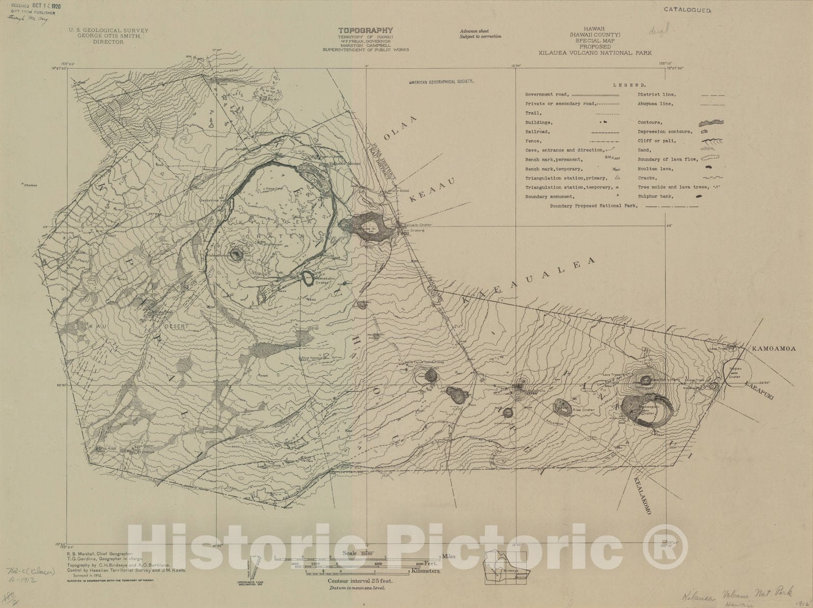 Hawaii (Hawaii County) special map, proposed Kilauea Volcano National Park : topography / U.S. Geological Survey ; R.B. Marshall, chief geographer ; T.G. Gerdine, geographer in charge ; topography by C.H. Birdseye and A.O. Burkland.
