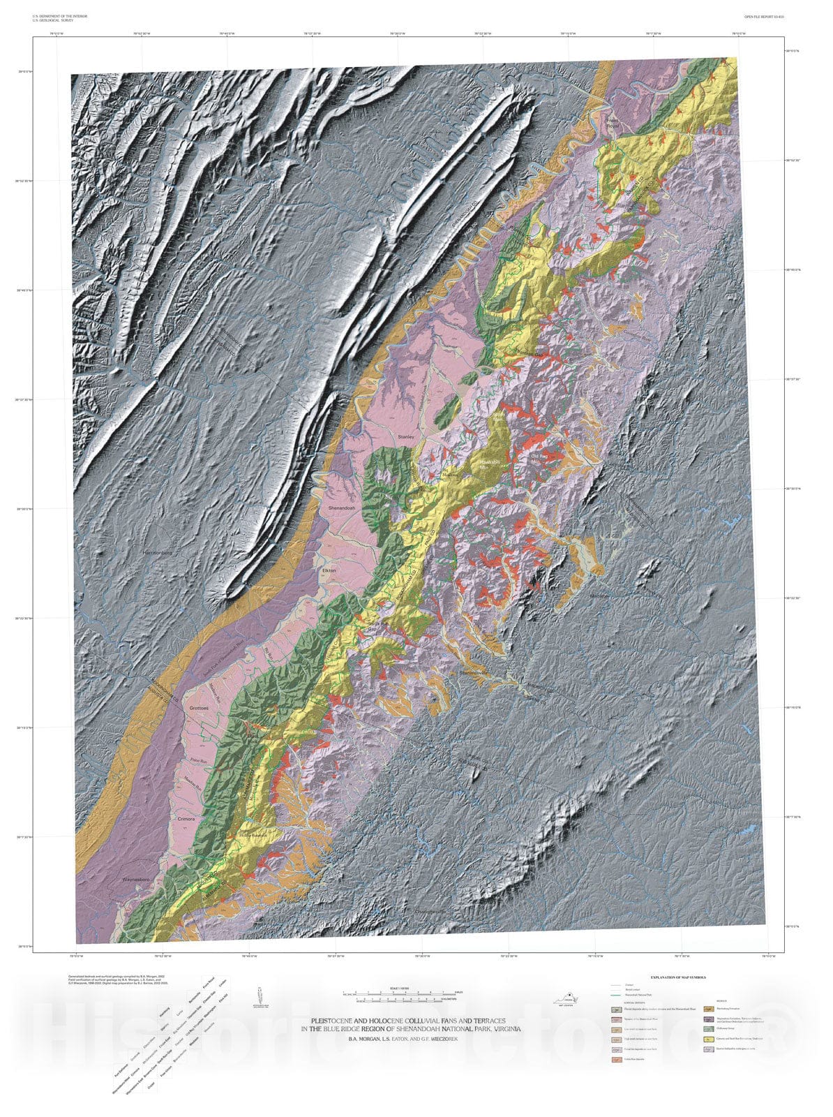 • .Map : Pleistocene and Holocene colluvial fans and terraces in the Blue Ridge region of Shenandoah National Park, Virginia, 2004 Cartography Wall Art :