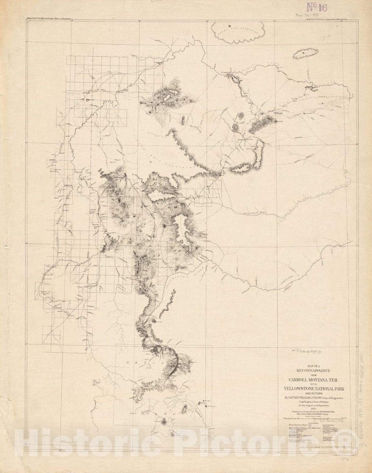 Map of a reconnaissance from Carroll Montana Ter. to the Yellowstone National Park and return by Captain William Ludlow, Corps of Engineers, Chief Eng