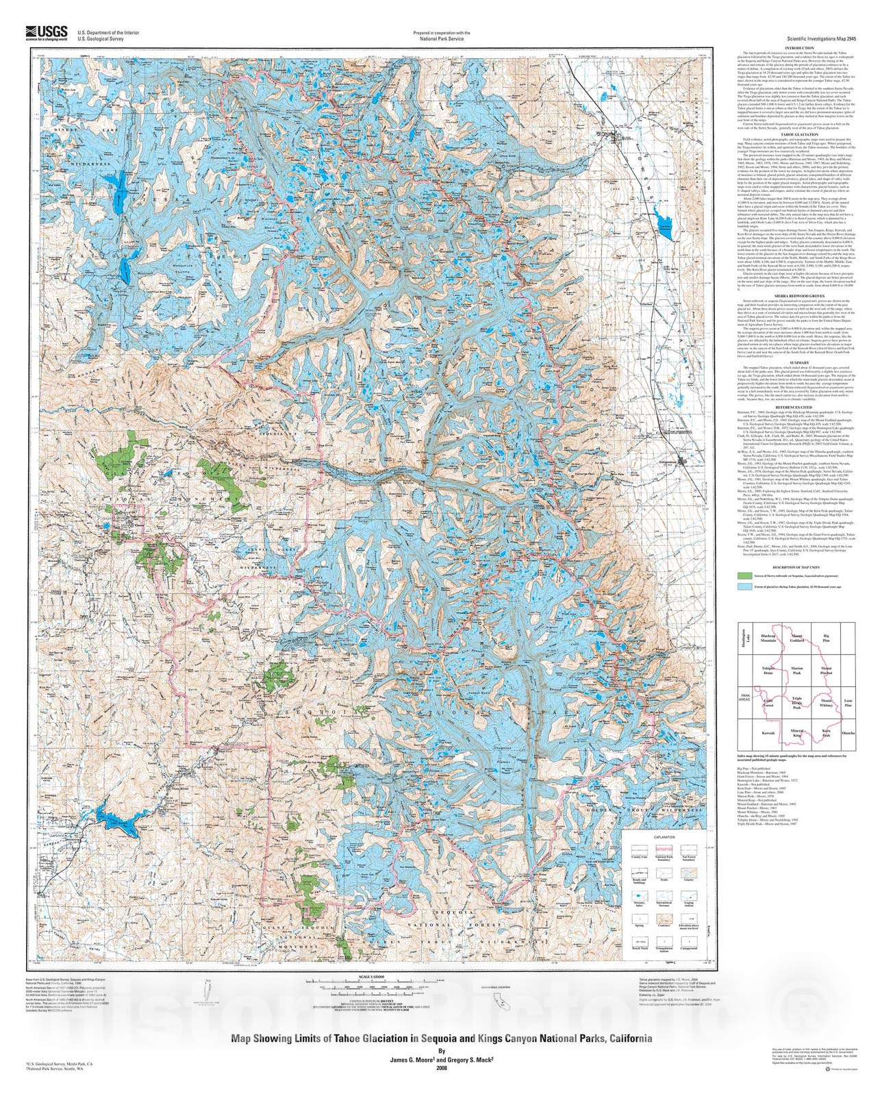 Map : Map showing limits of Tahoe glaciation in Sequoia and Kings Canyon National Parks, California, 2008 Cartography Wall Art :