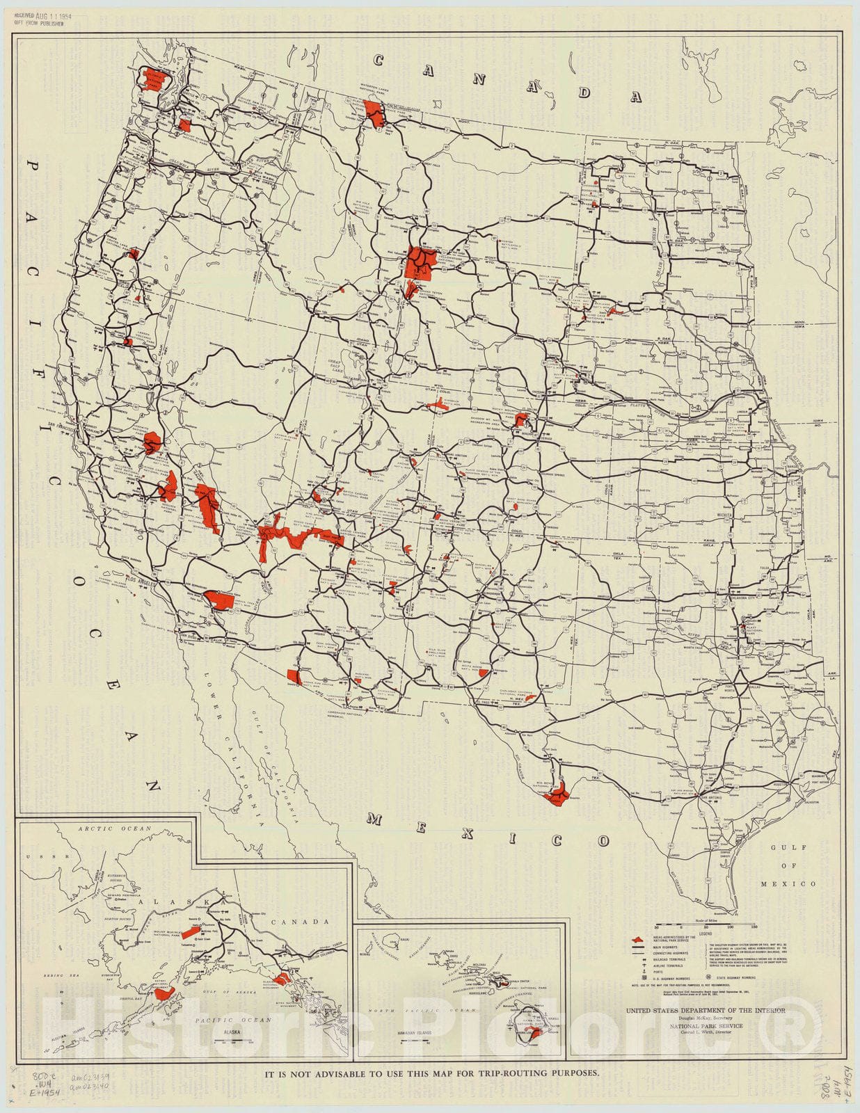 • .Map : United States, western 1954, [The National Park System - western United States] , Antique Vintage Reproduction