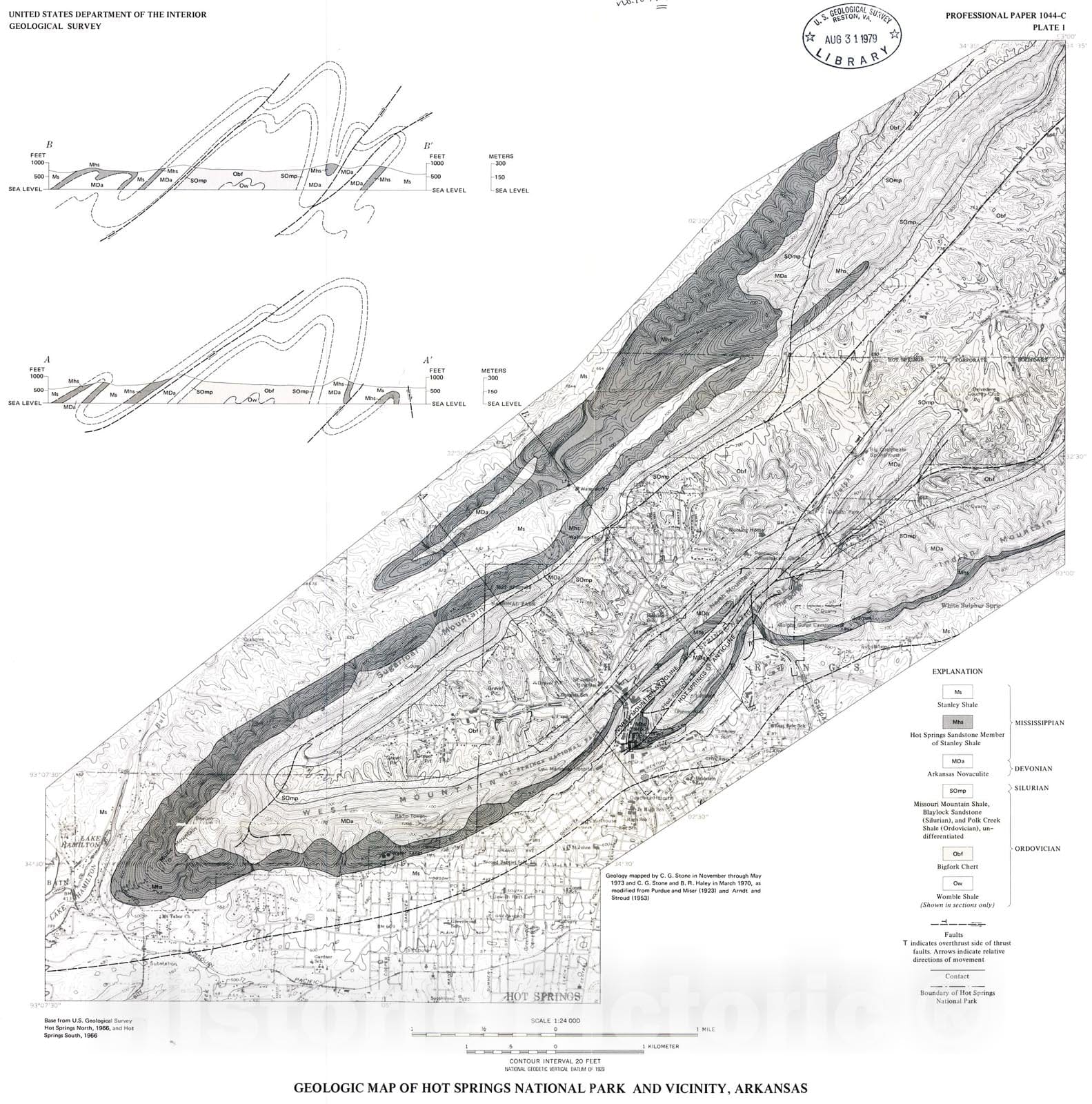 Map : The waters of Hot Springs National Park, Arkansas - their nature and origin, 1979 Cartography Wall Art :