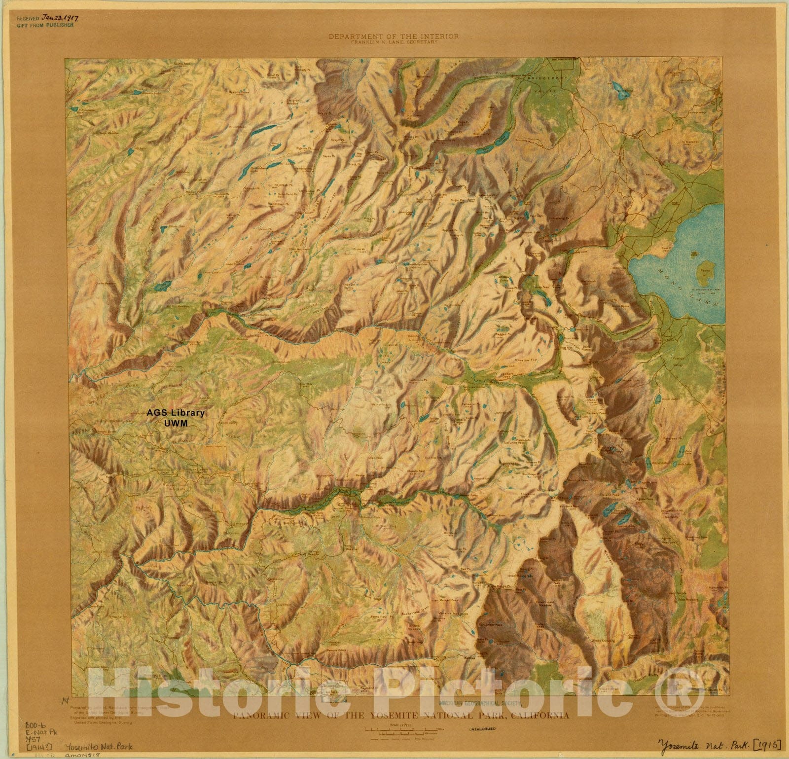 Map : Yosemite National Park, California [1914?], Panoramic view of the Yosemite National Park, California, Antique Vintage Reproduction