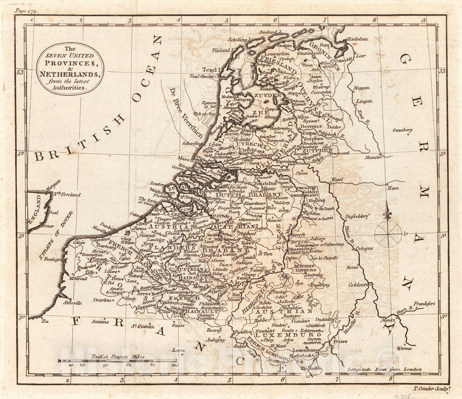 Historic Map : 1790 The Seven United Provinces & Netherlands, from the latest Authorities : Vintage Wall Art