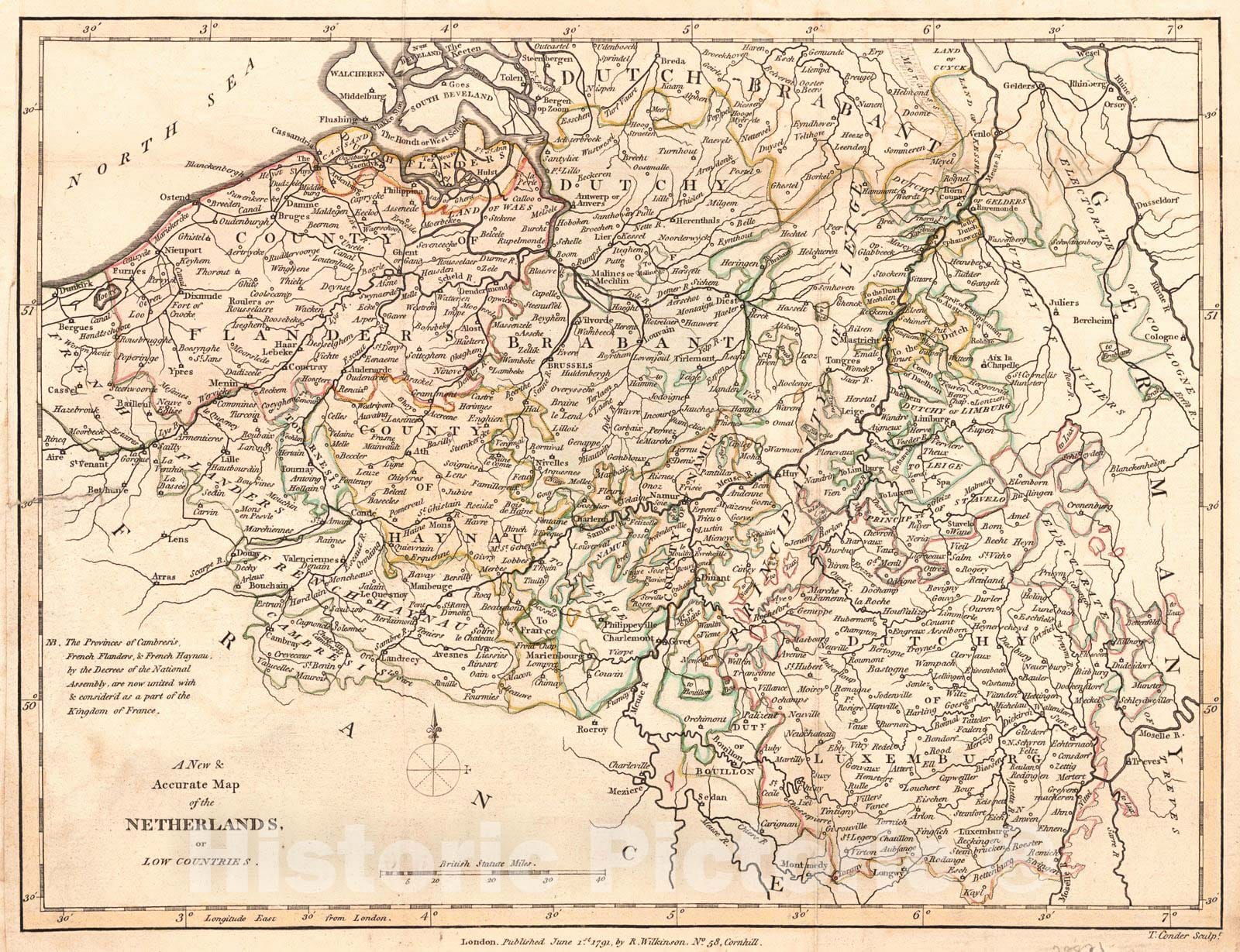 Historic Map : 1791 A New & Accurate Map of the Netherlands or Low Countries : Vintage Wall Art
