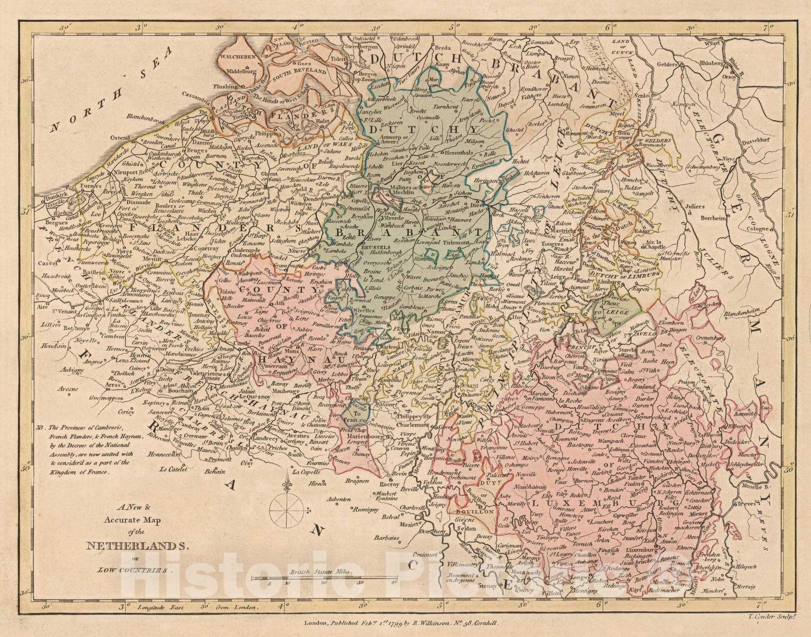 Historic Map : 1799 A New and Accurate Map of the Netherlands or Low Countries (Belgium). v1 - Vintage Wall Art