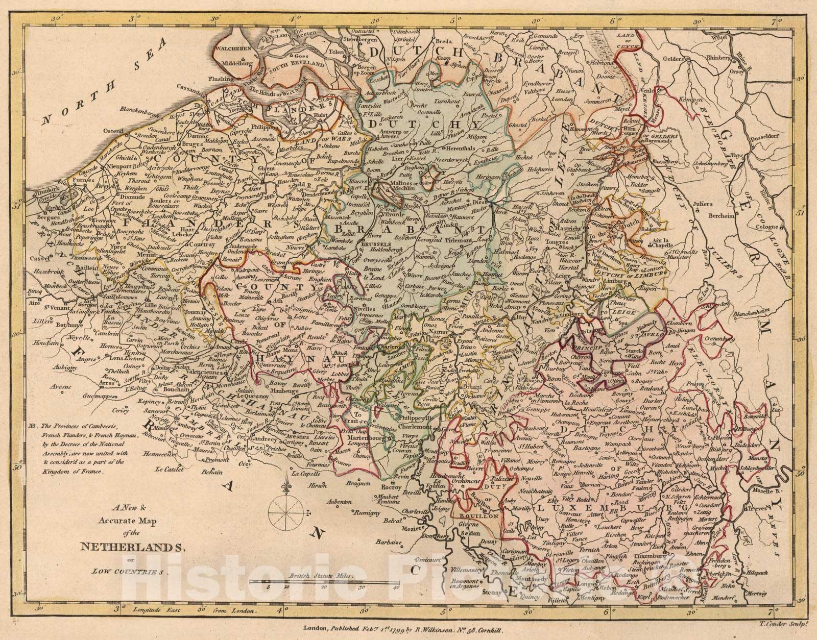 Historic Map : 1799 A New and Accurate Map of the Netherlands or Low Countries (Belgium). v2 - Vintage Wall Art