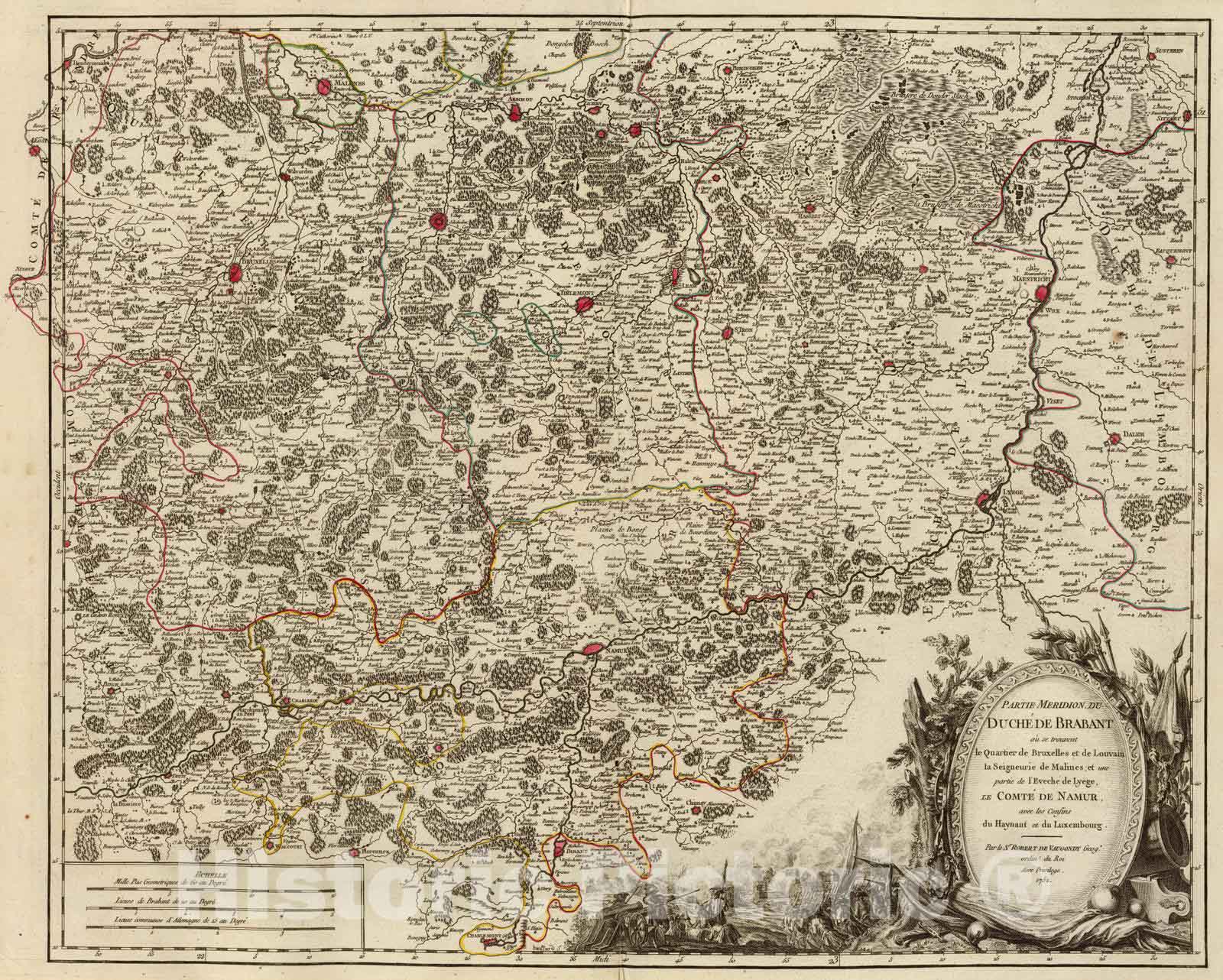 • Historic Map : Belgium; Netherlands, 1752 Brabant, Namur Partie Meridionale. , Vintage Wall Art