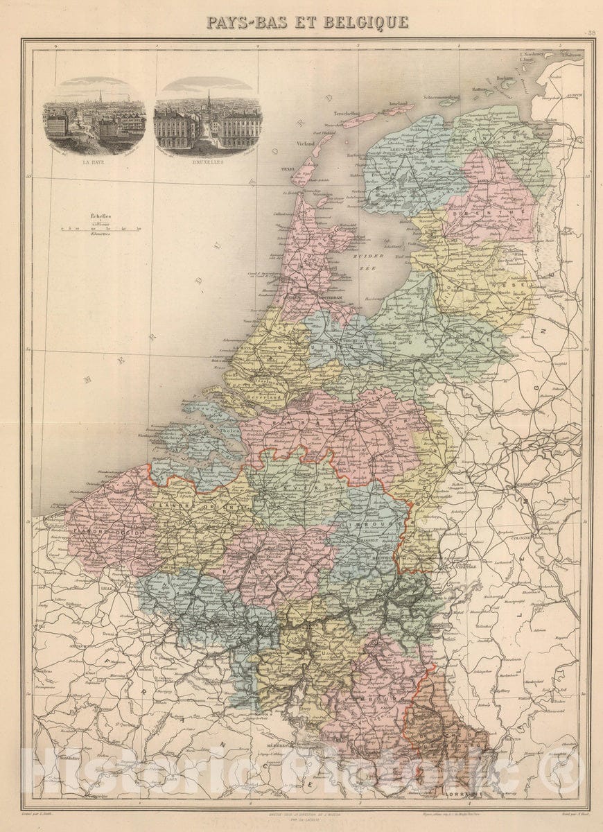 Historic Map : Belgium; Netherlands, 1892 Pays-Bas et Belgique. , Vintage Wall Art