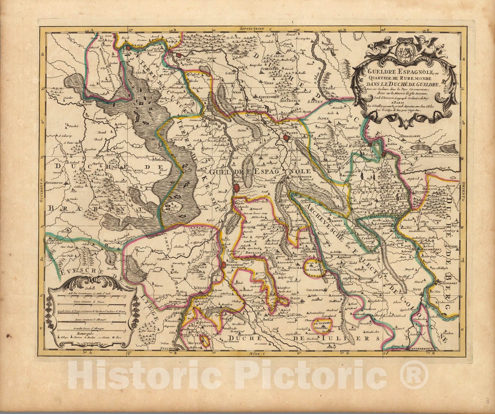Historic Map : Duchy of Guelders (Netherlands)Gueldre Espagnole. 1708 , Vintage Wall Art