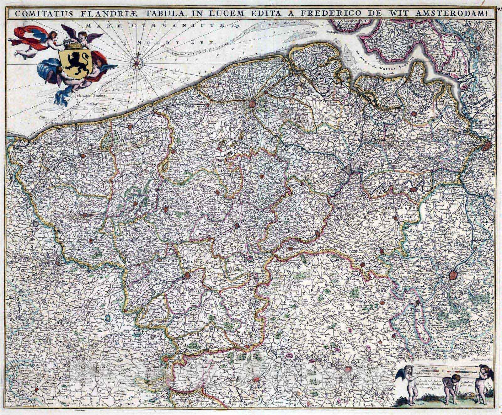 Flanders (Netherlands) 1682 Comitatus Flanderie Tabula in Lucem Edita. , Vintage Wall Art