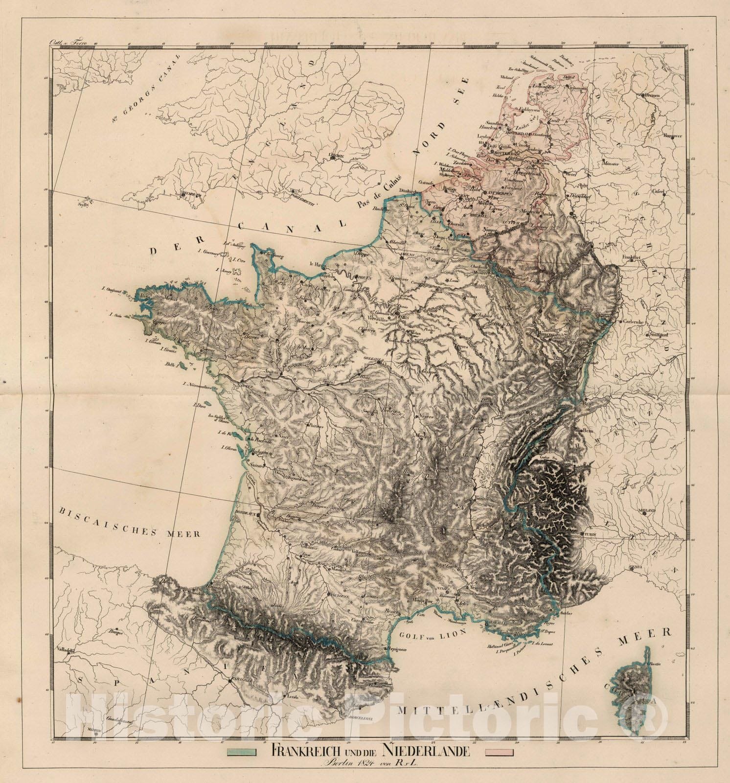 France; Netherlands; Belgium, 1824 Frankreich und die Niederlande. , Vintage Wall Art