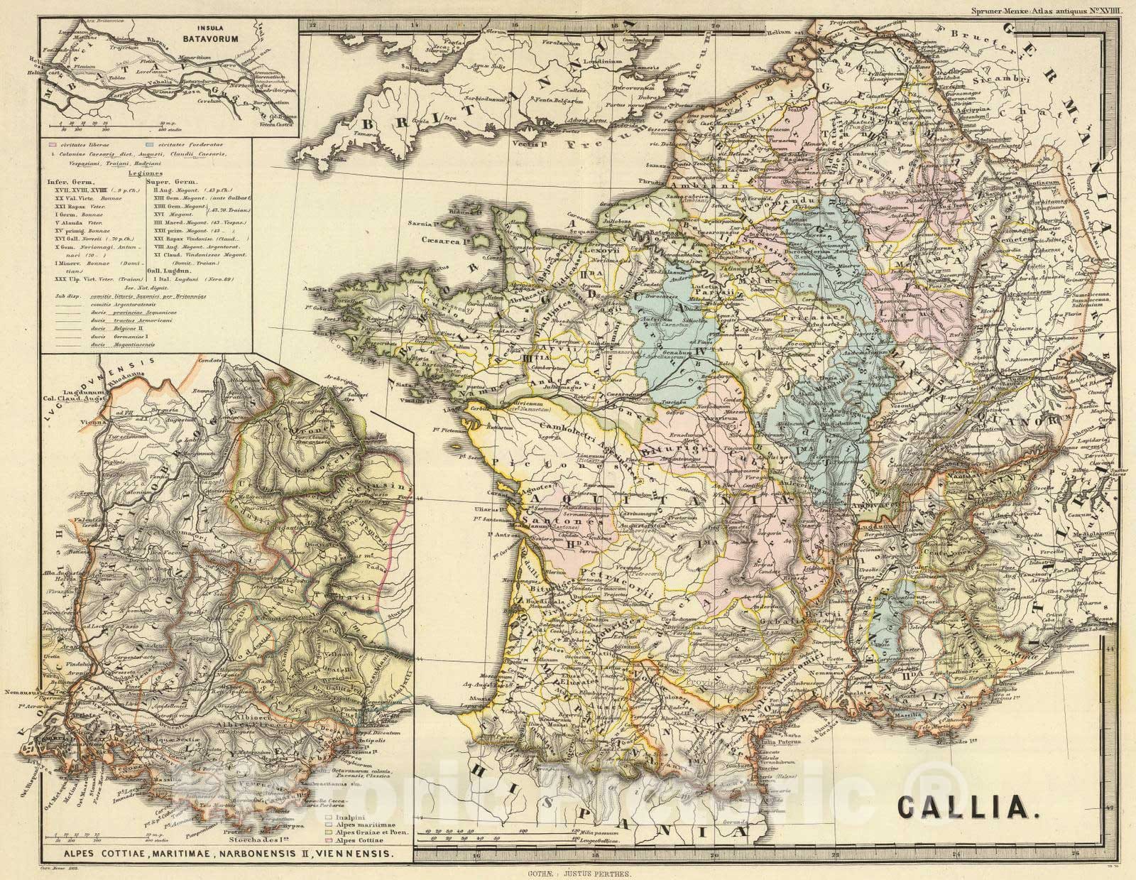 Historic Map : France; Netherlands, Benelux countries 1868 Gallia. , Vintage Wall Art