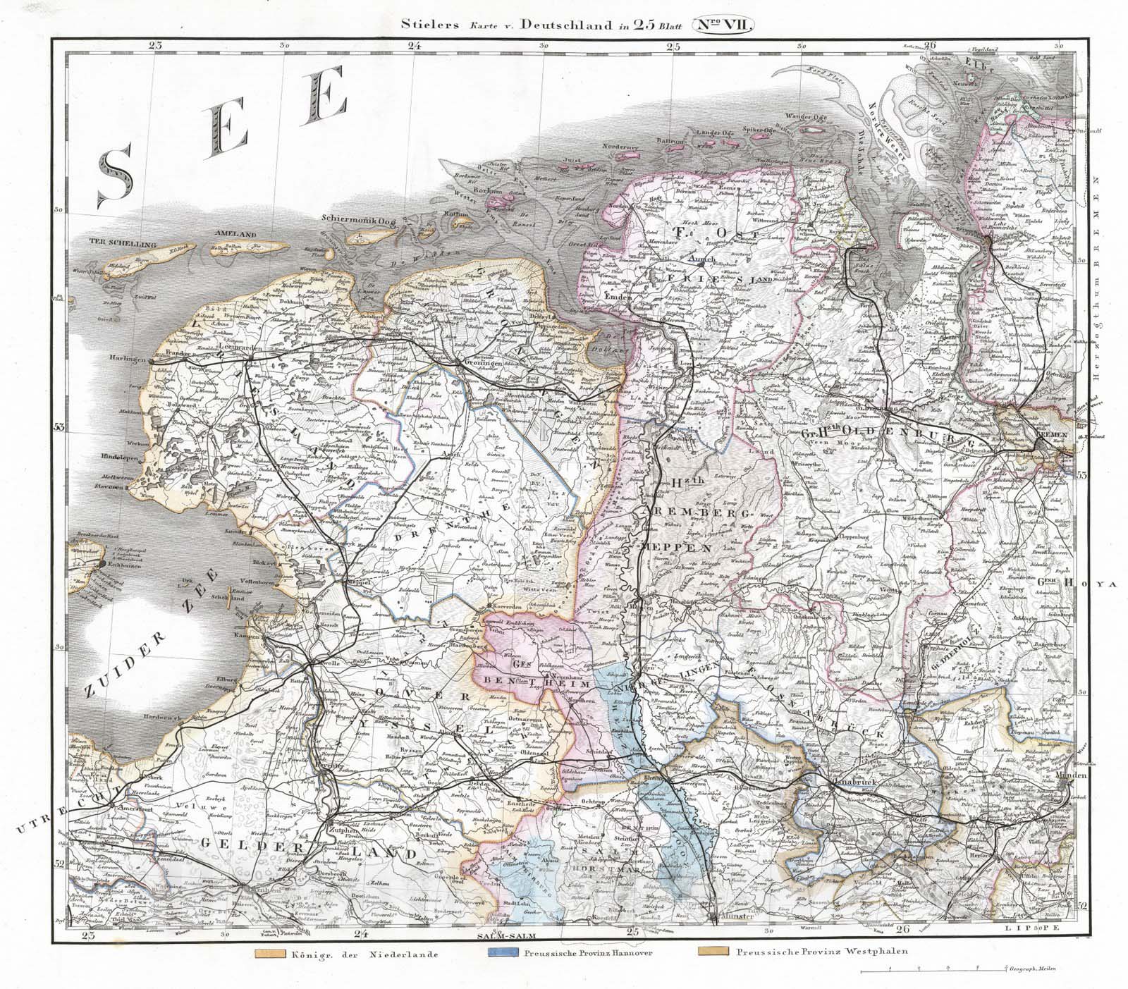 Historic Map : Germany, 1867 No. VII. Deutschland, Niederlande, Belgien, Schweiz. (Germany, Netherlands, Belgium, Switzerland). , Vintage Wall Art