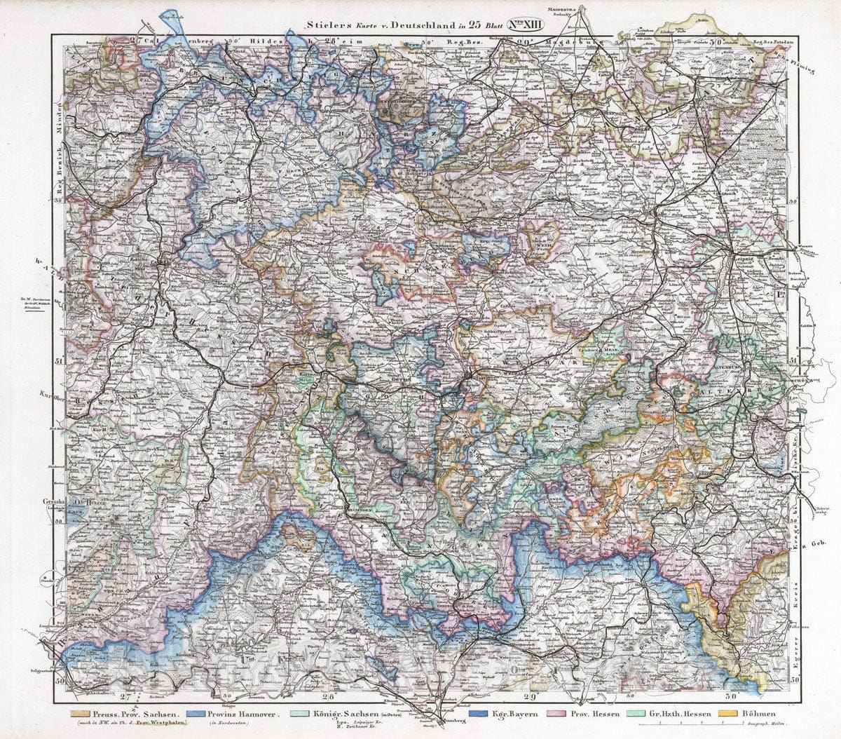 Historic Map : Germany, 1867 No. XIII. Deutschland, Niederlande, Belgien, Schweiz. (Germany, Netherlands, Belgium, Switzerland). , Vintage Wall Art