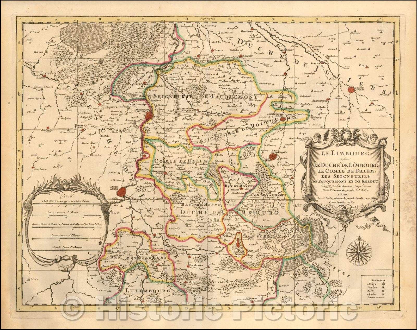 • .Historic Map - Le Limbourg ou font Le Duche de Limbourg le comte de Dalem; :: Limburg and Dalem in the southern Netherlands, 1700 - Vintage Wall Art