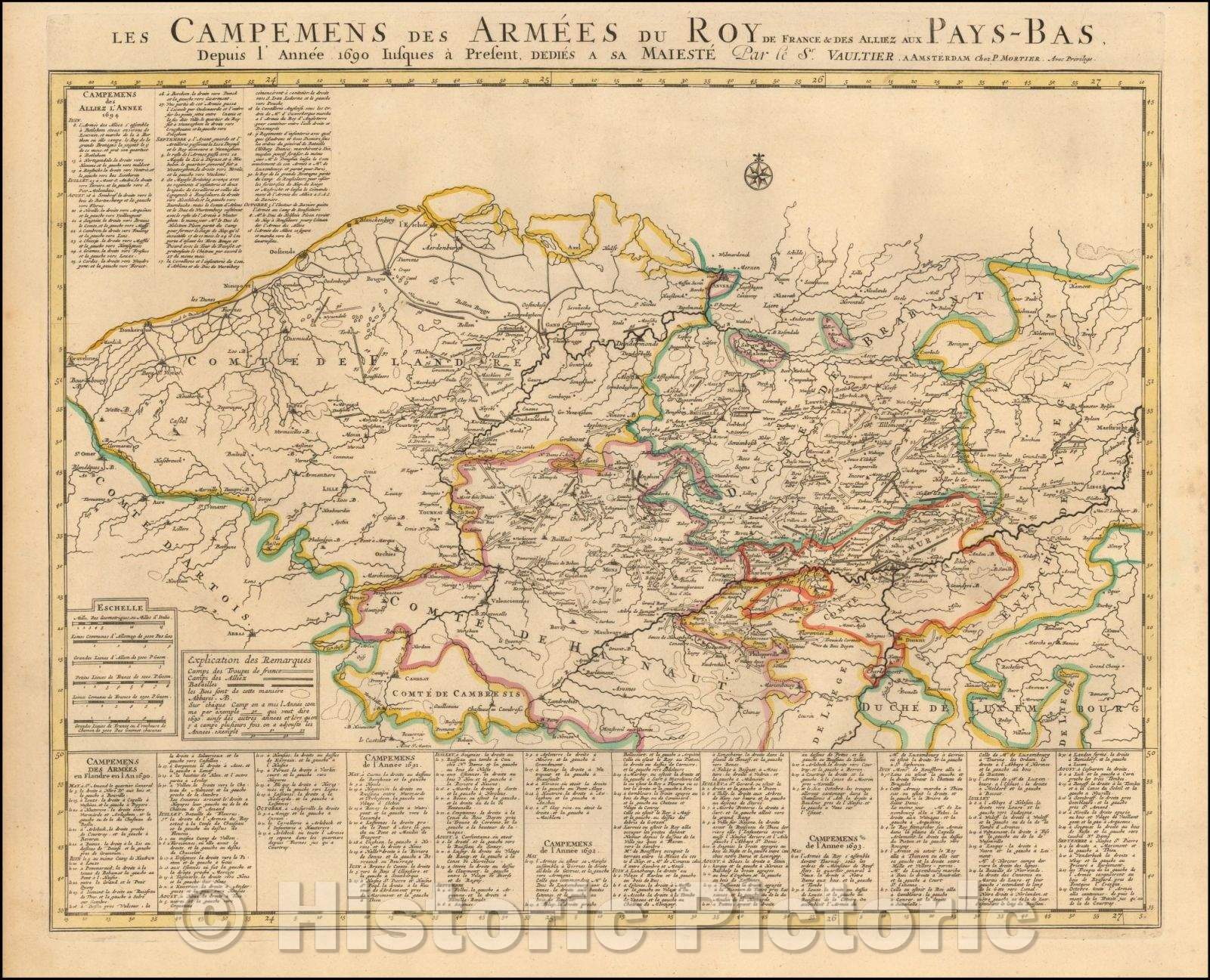 Historic Map - Les Campemens des Arm?s du Roy de France & Des alliez aux Pays-Bas./Armed encampments of the King of France and The Netherlands go, 1700 - Vintage Wall Art