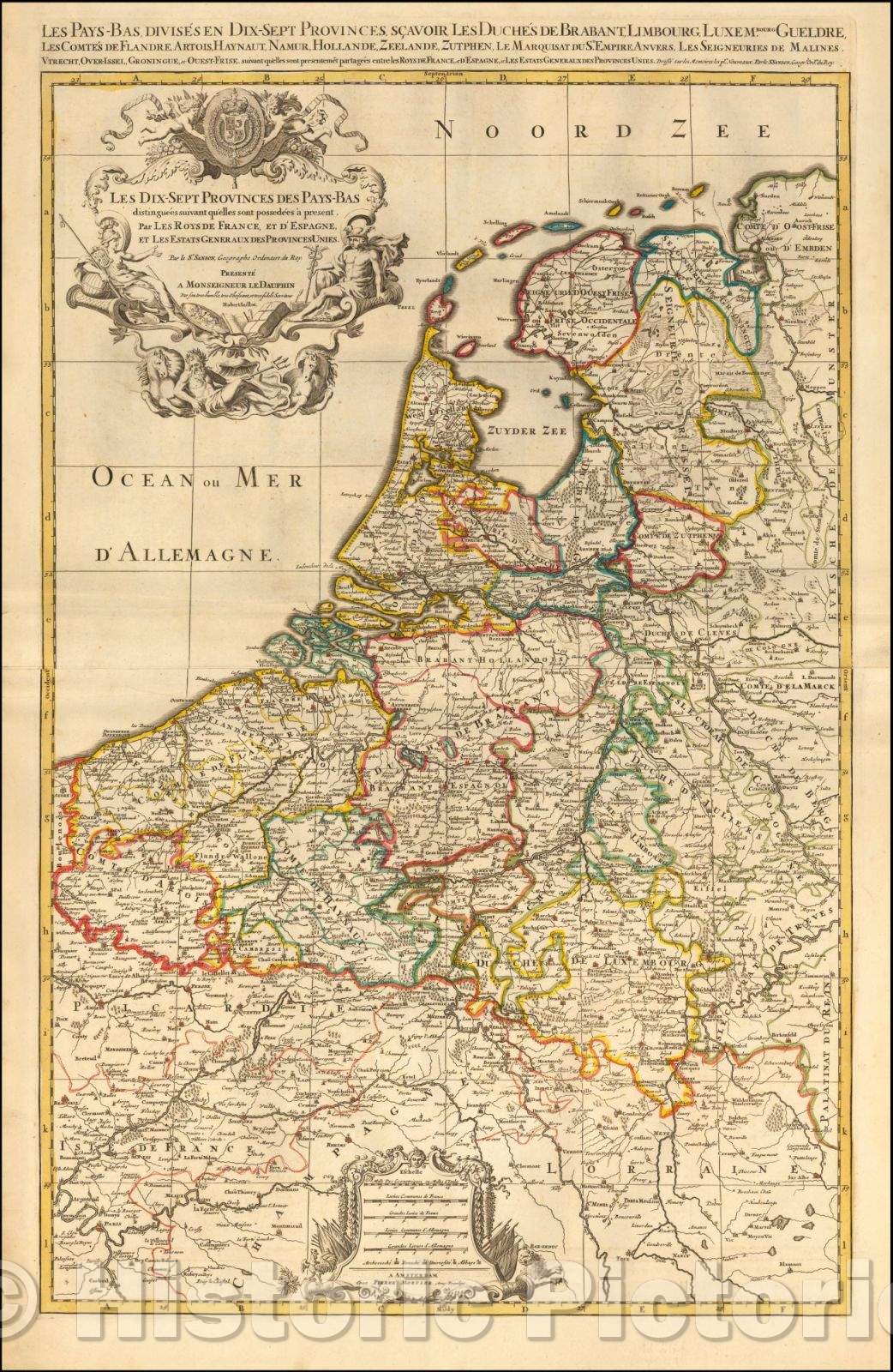 • .Historic Map - Les Dix-Sept Provinces Des Pays-Bas distinguees suivant qu'elles :: The Seventeen Provinces The Netherlands, 1700 - Vintage Wall Art