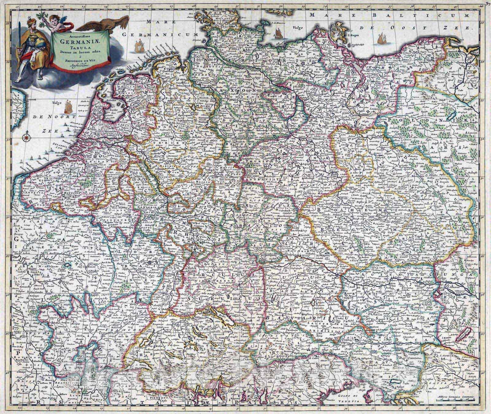 • .Historic Map : Netherlands, 1682 Accuratissima Germaniae Tabula. , Vintage Wall Art