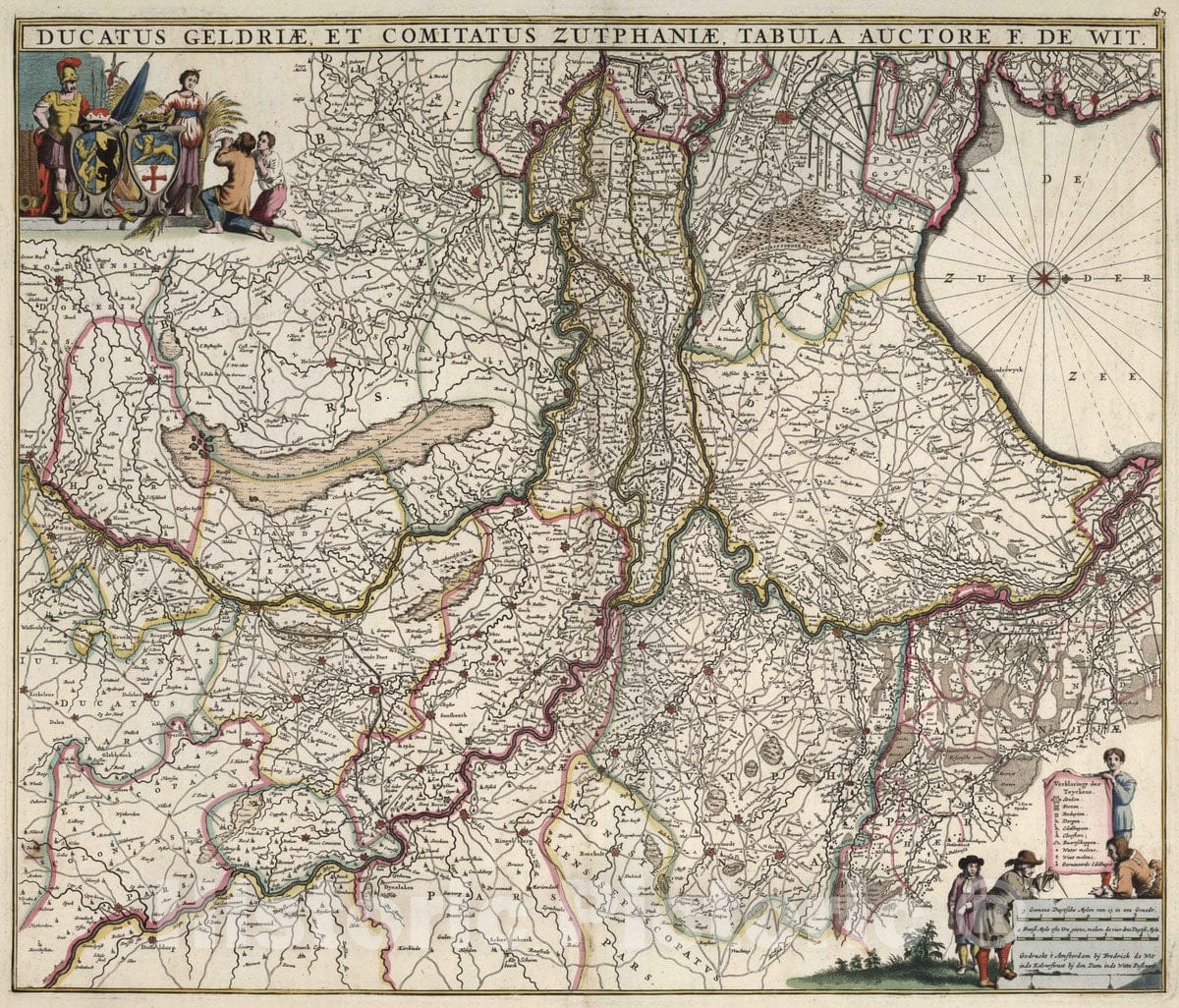 Historic Map : Netherlands, 1682 Ducatus Geldriae et Comitatus Zutphaniae. , Vintage Wall Art