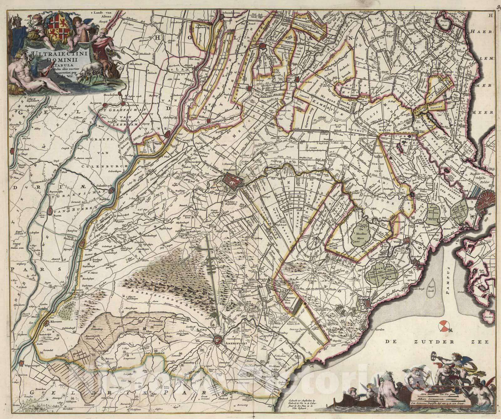 • .Historic Map : Netherlands, 1682 Ultraiectini Dominii Tabula. , Vintage Wall Art