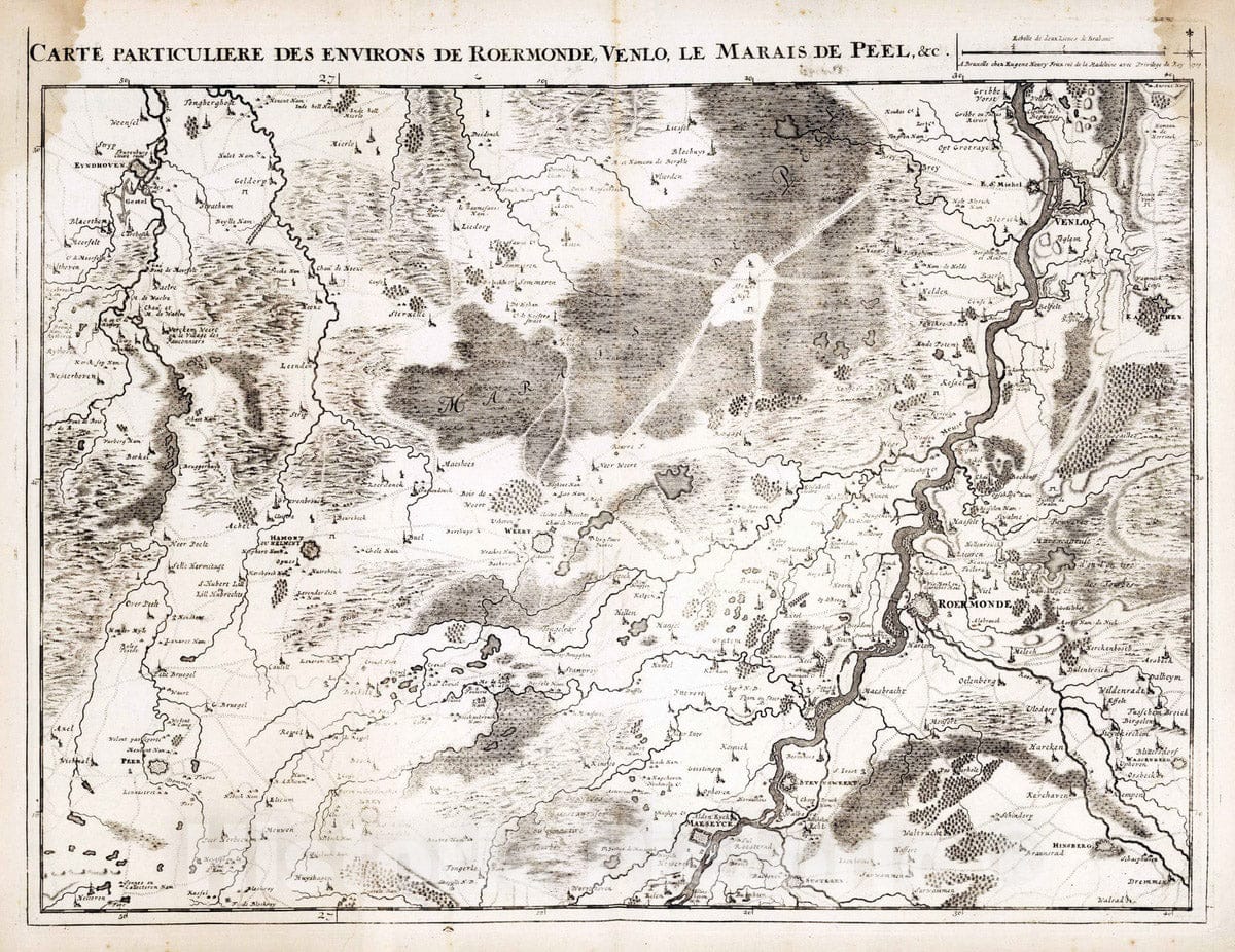 Historic Map : Netherlands, 1709 6. Carte particuliere des environs de Roermonde, Venlo, le Marais de Peel, c. 1709. , Vintage Wall Art
