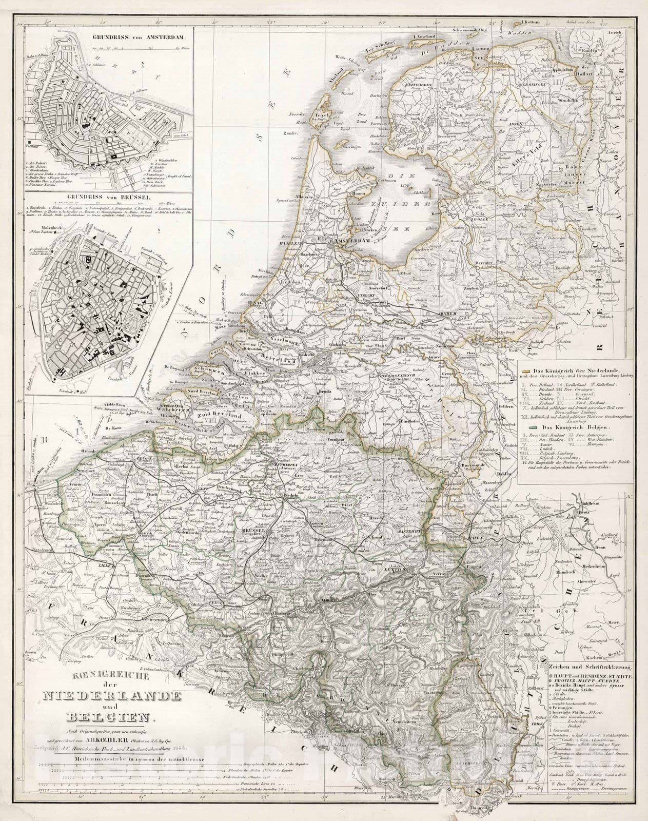 Historic Map : Netherlands, 1854 Koenigreiche der Niederlande und Belgien , Vintage Wall Art