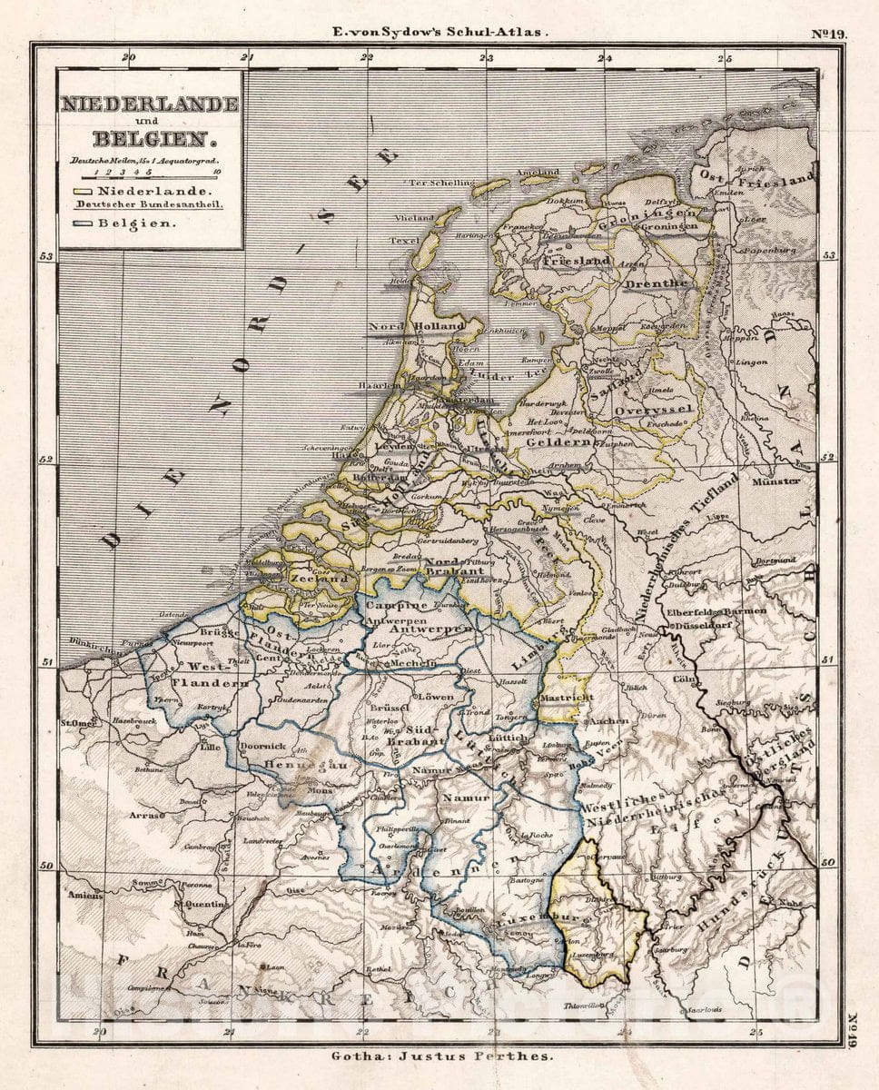 Historic Map : Netherlands, 19. Niederlande und Belgien. Netherlands and Belgium, 1872 Atlas , Vintage Wall Art