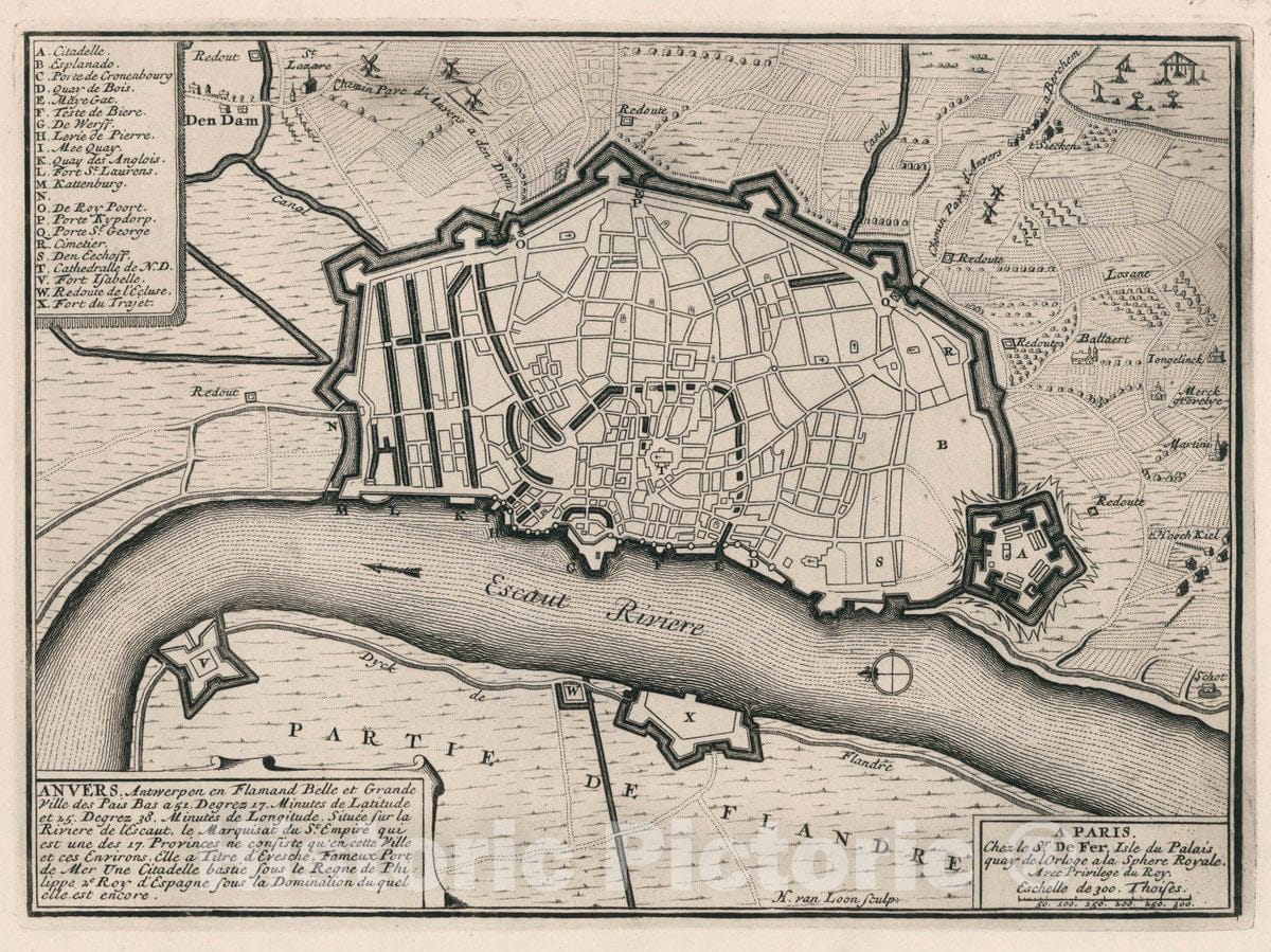 Historic Map : Netherlands , Antwerp Belgium Anvers Antwerpen en flamand Belle et Grande Ville des Pais Bas, 1696 Atlas , Vintage Wall Art
