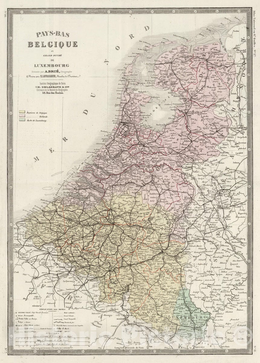 • Historic Map : Netherlands; Belgium, Low Countries 1875 Pays-Bas, Belgique, Luxembourg. , Vintage Wall Art