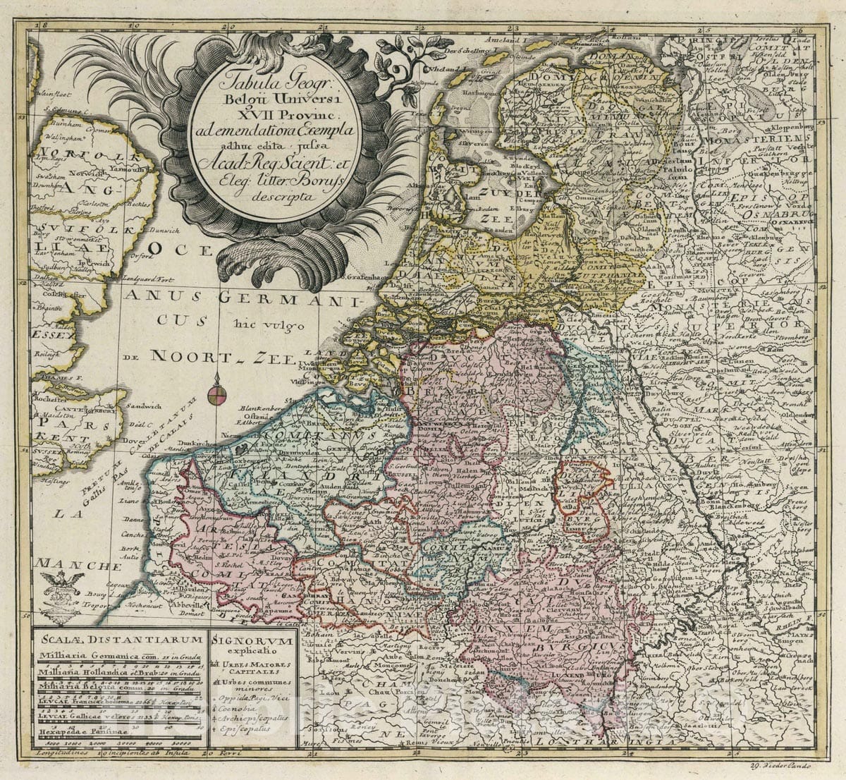 Netherlands, , Europe 1753 Tabula geogr: Belgii Universi VII Provinc