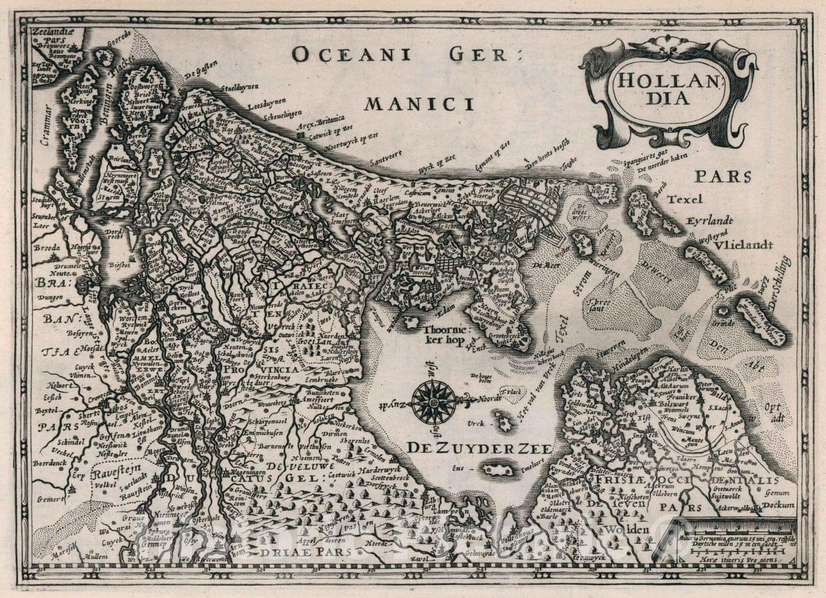 Historic Map : Netherlands, Hollandia. Atlas sive Cosmographicae Meditationes de Fabrica Mundi et fabricati Figura, 1636 Atlas , Vintage Wall Art