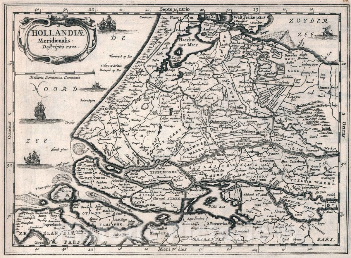 Historic Map : Netherlands, Hollandiae meridionalis descriptio nova, 1636 Atlas , Vintage Wall Art