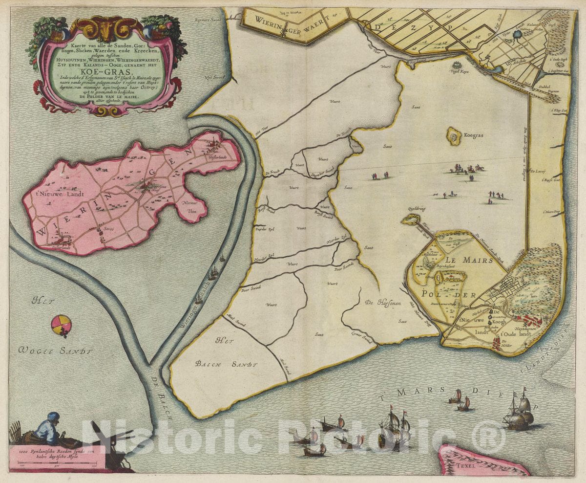 • Historic Map : Netherlands, Kaerte Van. Het Koe-Gras, 1665 Atlas , Vintage Wall Art