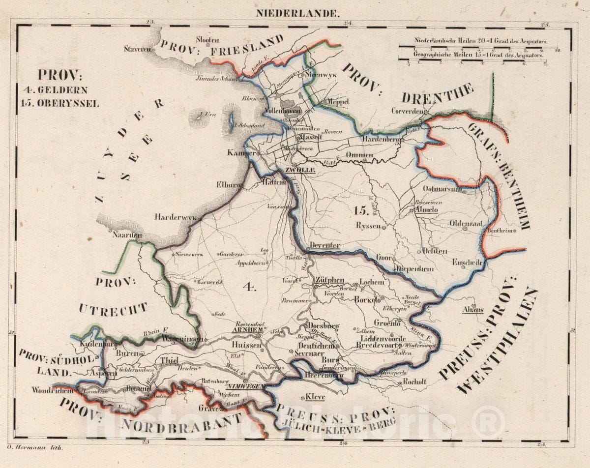 Niederlande: Prov: 4. Geldern. 15. Oberyssel. O. Hermann, Lith. (to accompany) Atlas von Europa nebst den Kolonien : Funfte Lieferung. Die Konigreich: 1. Niederlande, 2. Danemark, und, 3. Schweden mit Norwegen. | Atlas von Europa nebst den Kolonien : fur Geschaftsmanner, Zeitungsleser und Besitzer des Conversations-Lexicons in einer Folge von Charten und einem alphabetisch eingerichteten Texte : bearbeitet von W. E. A. v. Schlieben ... Leipzig bei Georg Joachim Goschen 1825. O. Hermann, Lith. | Publisher:Georg Joachim Goschen