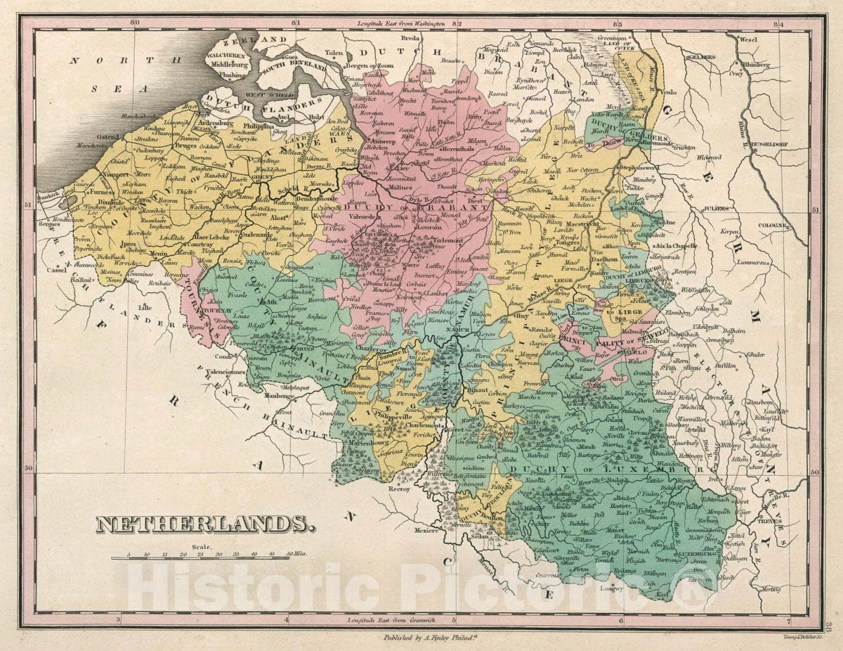 Historic Map : Netherlands. Young & Delleker Sc. Published by A. Finley, Philada, 1827 Atlas - Vintage Wall Art