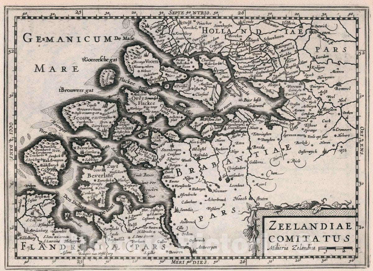 Historic Map : Netherlands, Zeelandiae Comitatus. Atlas sive Cosmographicae Meditationes de Fabrica Mundi et fabricati Figura, 1636 Atlas , Vintage Wall Art