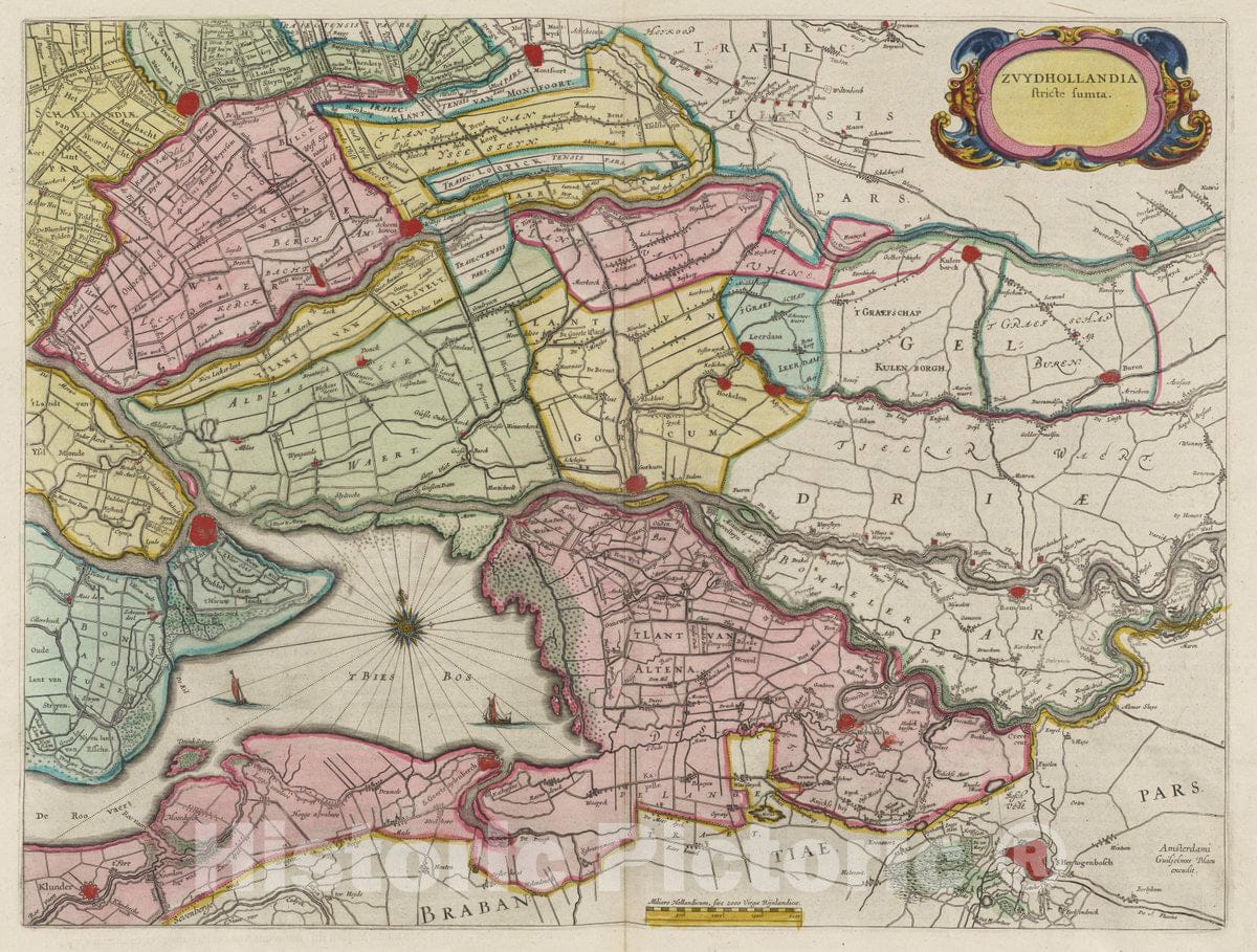 Historic Map : Netherlands, Zvydhollandia stricte sumta, 1665 Atlas , Vintage Wall Art