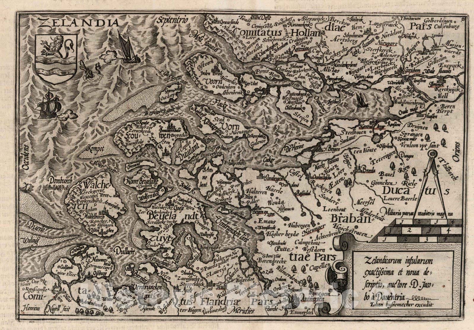 • .Historic Map : Netherlands,45. Zelandicarum insularum descriptio. 1600 , Vintage Wall Art