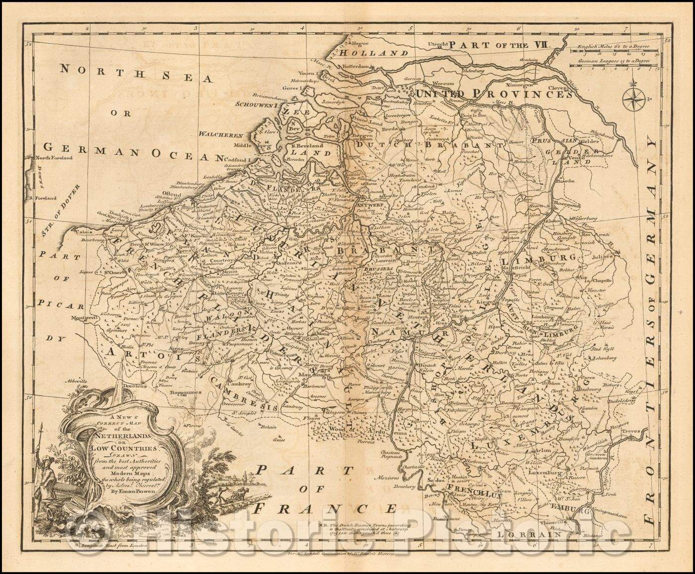 Historic Map - A New & Correct Map of the Netherlands or Low Countries, 1740, Emanuel Bowen - Vintage Wall Art