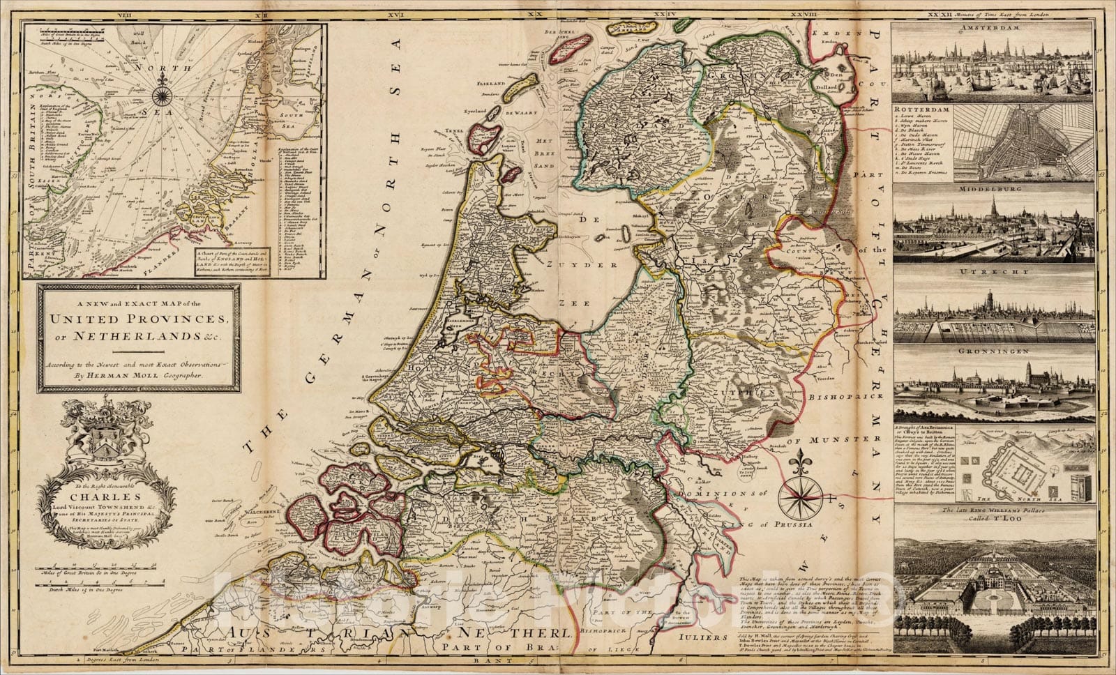 • .Historic Map : A New and Exact Map of the United Provinces, or Netherlands, andc, 1720, , Vintage Wall Art