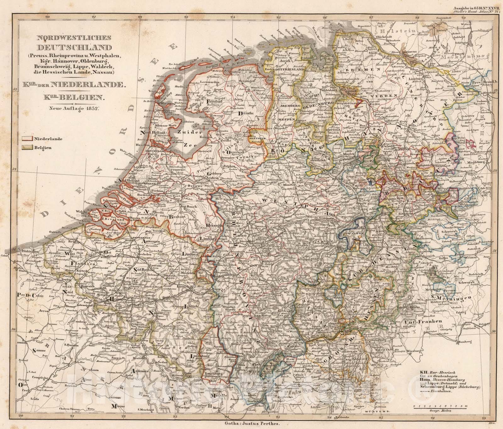 Historic Map : Nordwestliches Deutschland ... Niederlande ... Belgien. (Germany. Netherlands. Belgium)., 1852, Vintage Wall Art