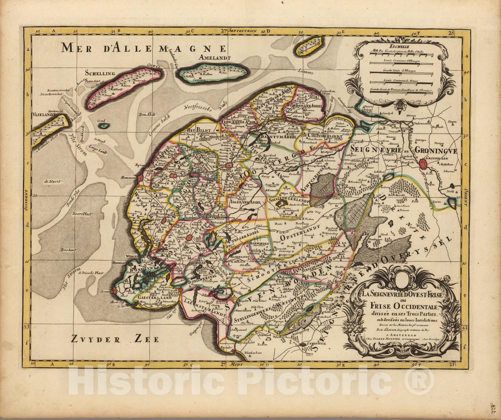 Historic Map : Ovest-Frise (Netherlands)La Seigneurie d'Ovest-Frise. 1708 , Vintage Wall Art