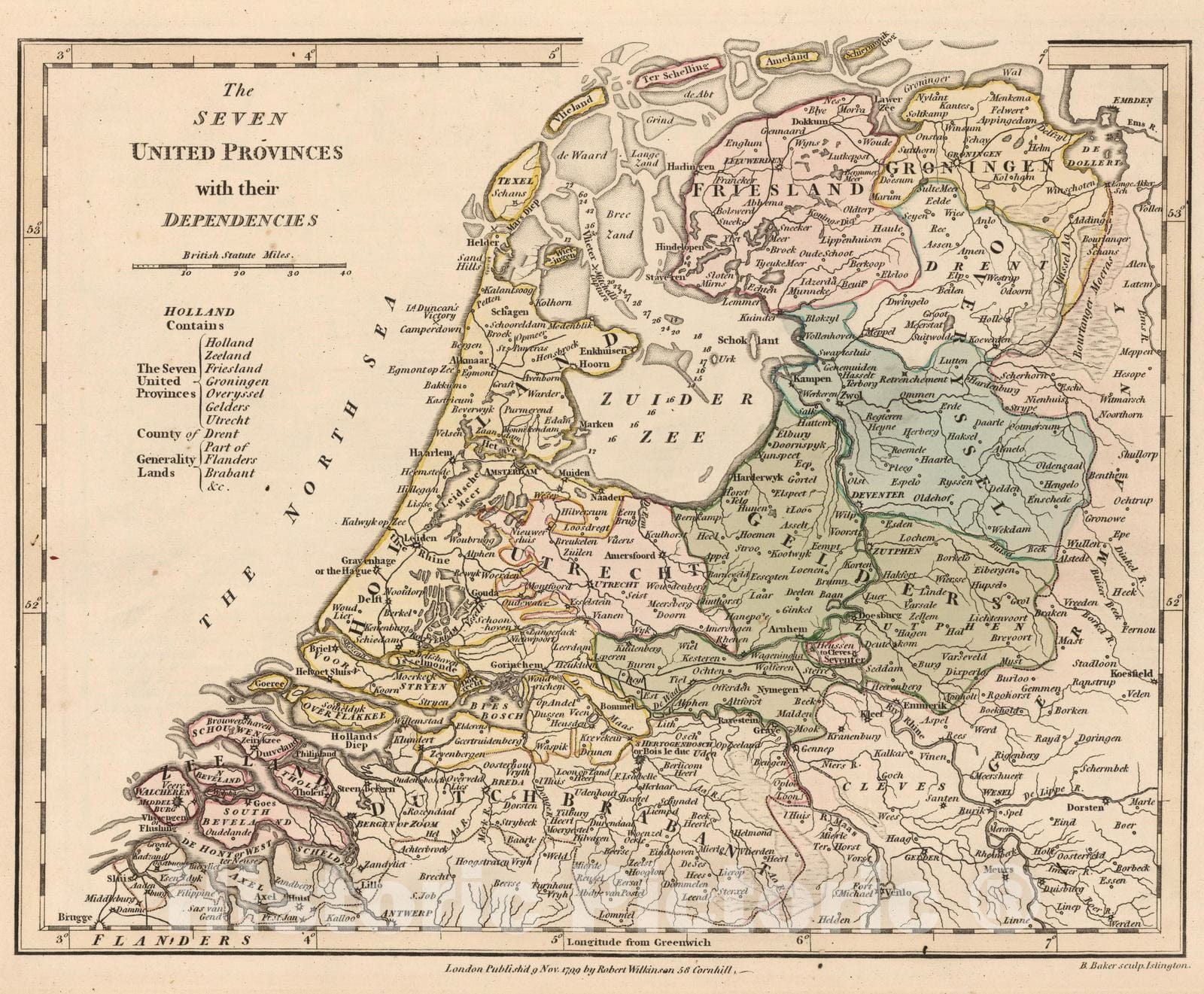 Historic Wall Map : 1799 The Seven United Provinces with their Dependencies (Netherlands). - Vintage Wall Art