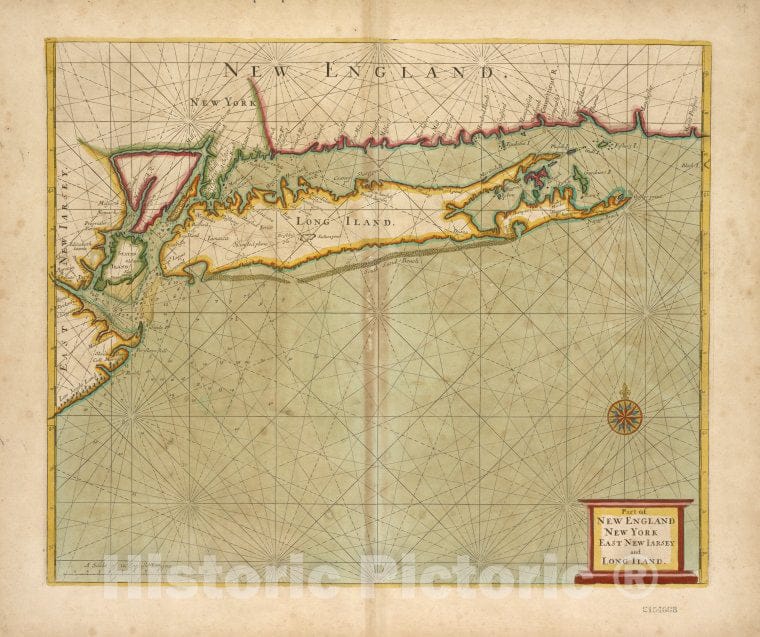 Historic 1702 Map - Part Of New England, New York, East New Iarsey And Long Iland. - Vintage Wall Art