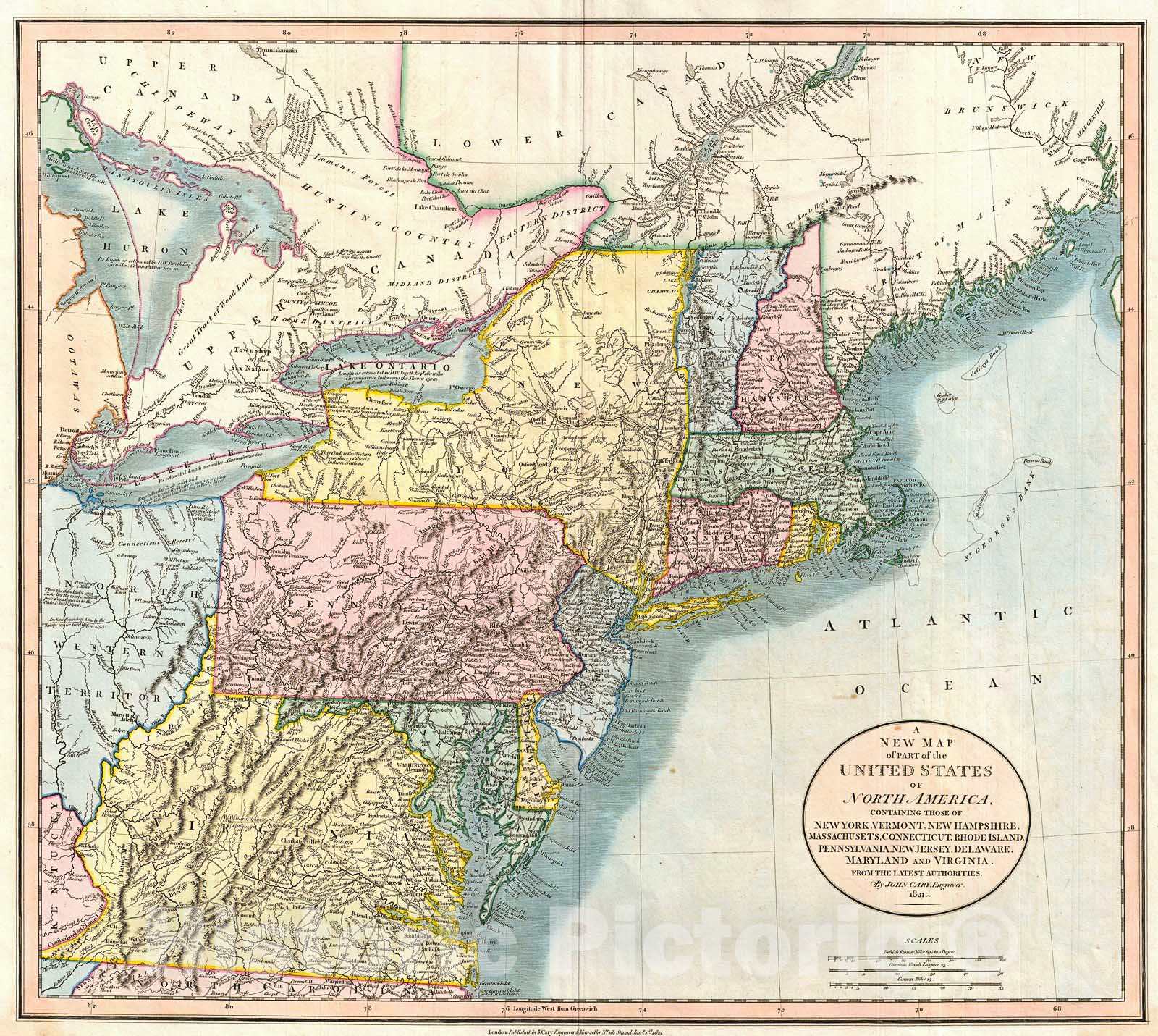 Historic Map : Cary Map of New England, New York, Pennsylvania and Virginia , 1821, Vintage Wall Art