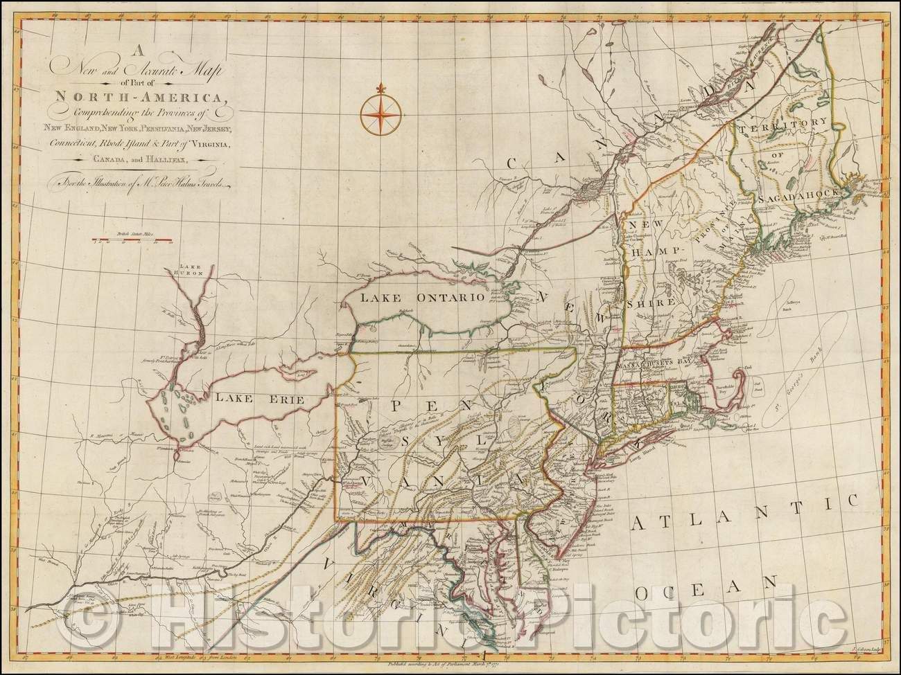 Historic Map - A New and Accurate Map of Part of North-America, Comprehending the Provinces of New England, New York, Pensilvania, New Jersey, Connecticut, 1771 - Vintage Wall Art