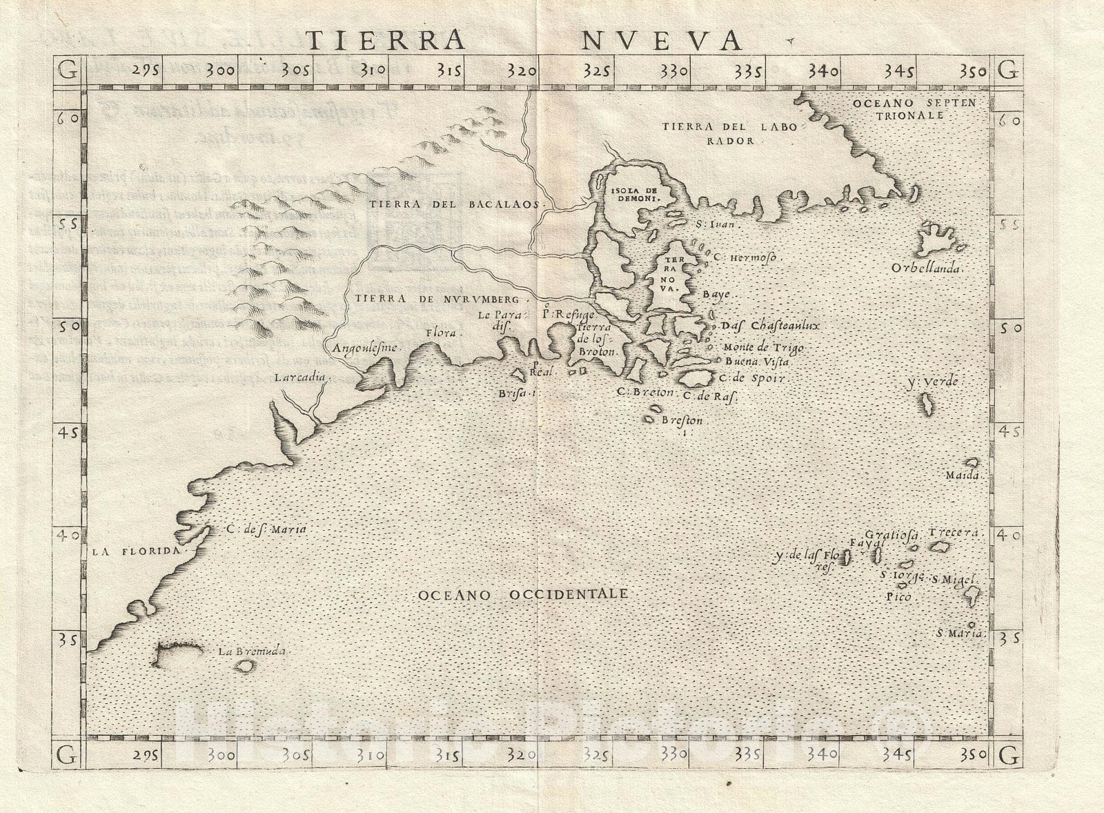Historic Map : New England and The Maritimes "Norumbega", Ruscelli, 1561, Vintage Wall Art