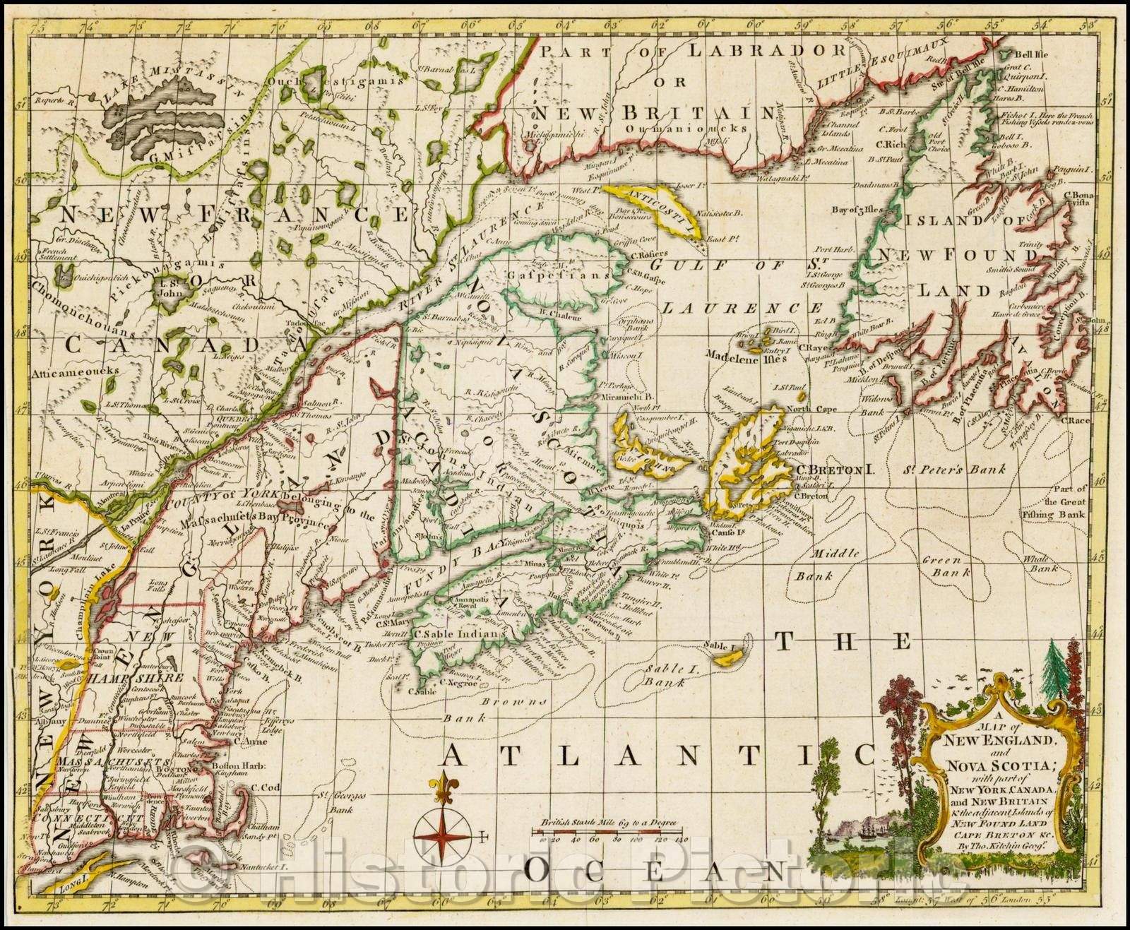 Historic Map - A of New England and Nova Scotia; with part of Canada, New York and New Britain & the adjacent Islands of New Found Land and Cape Breton, 1758 - Vintage Wall Art